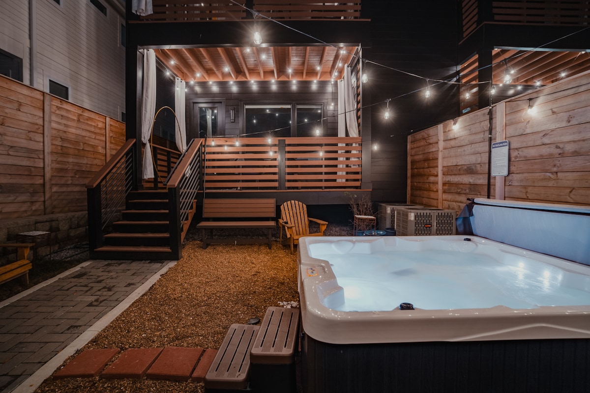 歡迎來到Underwood Manor ,距離市中心僅幾分鐘路程,是納什維爾最適合團體和單身派對的住宿! 在7人熱水浴缸中放鬆身心,在我們新增的情緒化地下酒吧遊戲室中玩得開心,配有撞球桌、飛鏢和智能電視。 享受私人後院,配有無煙火坑、小酒館燈和燒烤。 玩吃豆人和1000多個遊戲機、卡拉OK、快速WiFi和65英寸智能電視。 您可以無限量享用 Nespresso 咖啡、在設備齊全的廚房烹飪,或在配有淋浴和 43 吋智能電視的特大套房中放鬆身心。