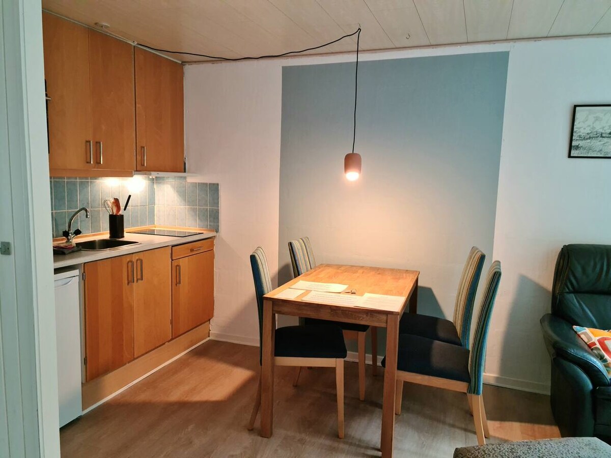 中間有家具齊全和設備齊全的迷人公寓。 免費私人停車場距離酒店25米。 使用密碼進入大門和大門 公寓包含: -大客廳,有辦公空間和沙發牀,可供兩人高品質使用。 -設備齊全的廚房,最少4人用餐 -臥室 -浴室配有步入式淋浴間和浴缸 -有一臺43吋電視。 沒有流動電視或電視訂閱。 電視可以與房客自己的登入一起使用,用於房客自己的串流服務( DR、TV2、Viaplay、Netflix等)