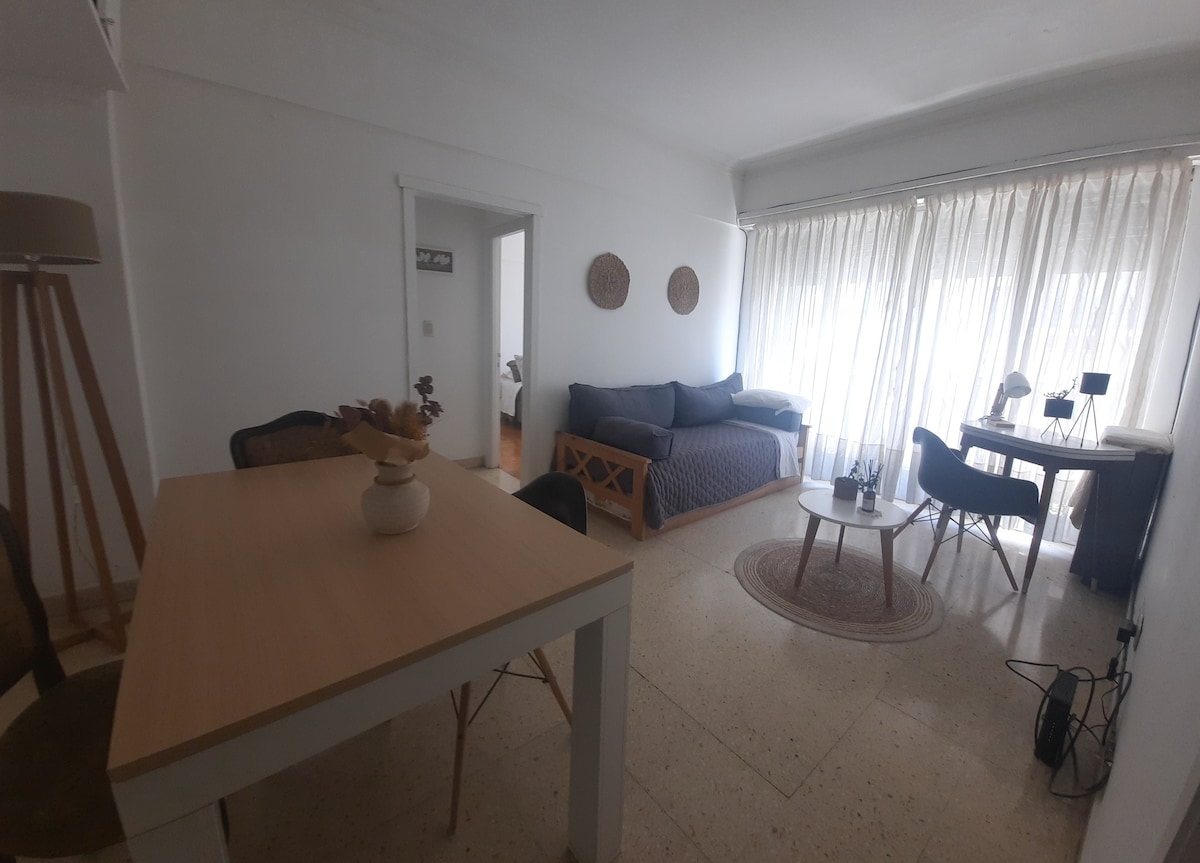 位於市中心的簡單、整潔和舒適的公寓! 九樓,陽台面向街道,安靜的建築,靠近第一警察局、Av colon、bs.as街。 非常靠近市中心,靠近 Aldrey 大道。 靠近超市、麵包店、公共交通工具。 光線充足,配備一切所需,讓您有家的感覺