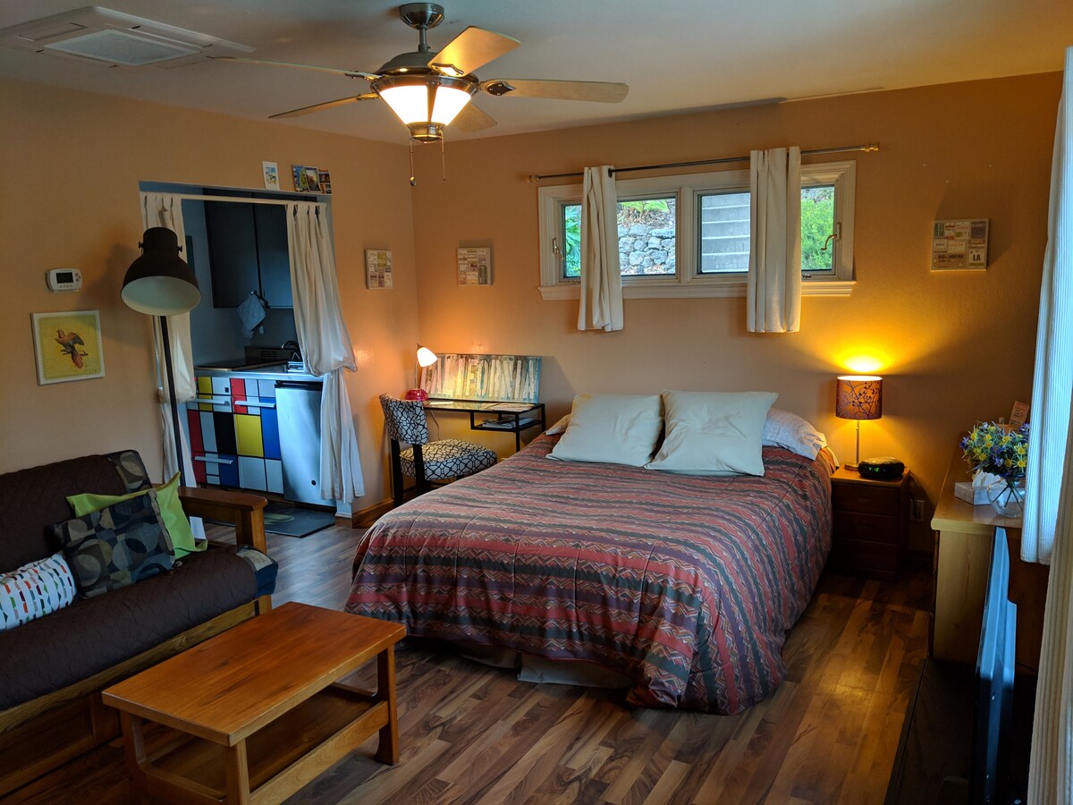 This sun-soaked suite has a private entrance and access to a beautiful garden patio, complete with night-time ambiance and a fireplace. The big bay window provides a view into the lush fruit, flower, and vegetable garden right outside. The comfy bed and beautiful old-town neighborhood add to the warm, homey feel. The suite is tucked away from the busiest parts of the city, perfect for a hub in the middle of NorCal's best attractions: SF, Carmel, Pebble Beach, Monterey, Santa Cruz, and more.