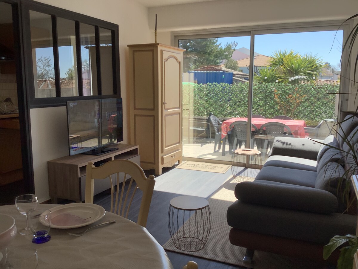 入住這間位於寧靜住宅一樓的公寓,為您的電池充電。 享受朝南的露臺☀️,更不用說空調的舒適感了。 您的車輛和自行車有一個地下室盒子。 靠近所有商店,騎自行車僅需7分鐘即可抵達Nauzan海灘,或步行20分鐘即可抵達綠色的Nauzan公園。 我們的公寓非常適合與家人或朋友一起度假,可供4人入住。