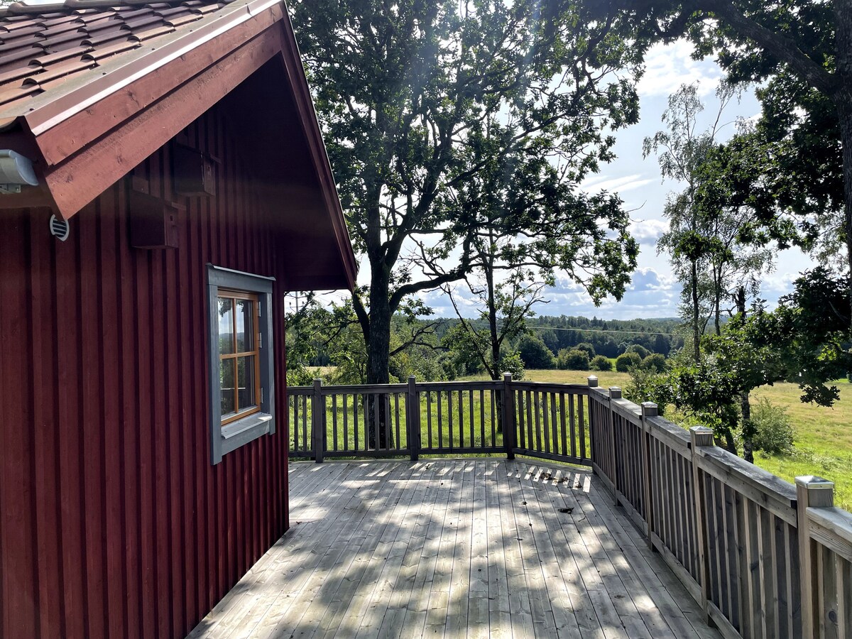 一樓有廚房和浴室的小屋,樓上有臥室/電視房,可俯瞰湖景。 它位於我們居住的地方,一個有兩名成人、兩名兒童和小狗的家庭。 內陸感覺靠近森林和景觀、步行和騎自行車道、Sämsjön和Åsunden的遊泳和釣魚。 幾英裏的鋪面自行車道甚至非常適合從門外開始的滾軸滑雪板。 根據協議,可以租一艘船。 在季節自行挑選蘋果。