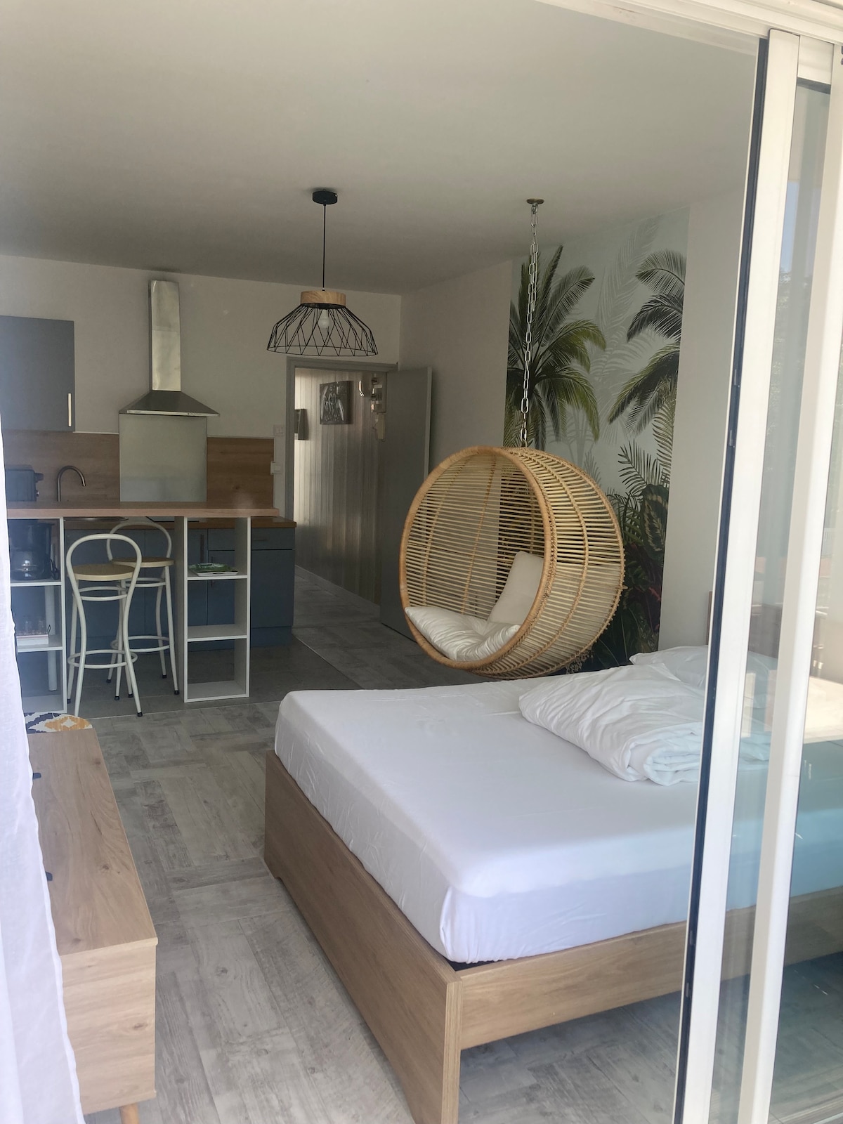 歡迎來探索我們的房間,配有電視螢幕、160x200床、獨立浴室。設備齊全的廚房,包括微波爐、大冰箱、燃氣爐和私人露臺以及停車位。WiFi。 旺季可使用戶外游泳池。躺椅供您使用,房子的這一部分可以裸體。 入住前請通知: - 可享用早餐,每人 8 歐元 - CaroNel 按摩 1 小時:4 手或單人道