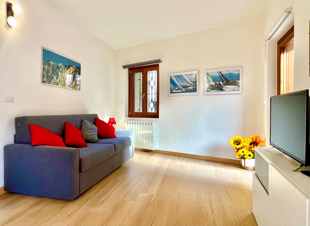 馬焦雷湖的中心,在蘇納湖的中心,矗立著歷史悠久的馬特里卡迪宮殿,內有全新翻修的公寓。 這間公寓距離湖泊僅幾公尺,由一個寬敞明亮的客廳和廚房組成;透過中央的大窗戶,您可以欣賞湖泊、山脈和令人難以置信的日落。步行仅需2分钟,即可抵达两个美丽的湖滨海滩、酒吧和当地特色餐厅。