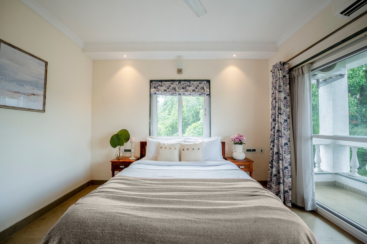 烏布:停下腳步,深呼吸,回歸家園。 在繁華之中找到一個寧靜的角落。 這間寧靜的1BHK受到《飲食、祈禱、愛》的啟發,是你在果阿邦比華利山的阿薩加翁(Assagaon)綠意盎然的私人寺廟。 距離Jamun ( 3分鐘)、Mojigao ( 4分鐘)和Izumi (步行5分鐘)僅一步之遙,是放鬆身心的理想地點。
