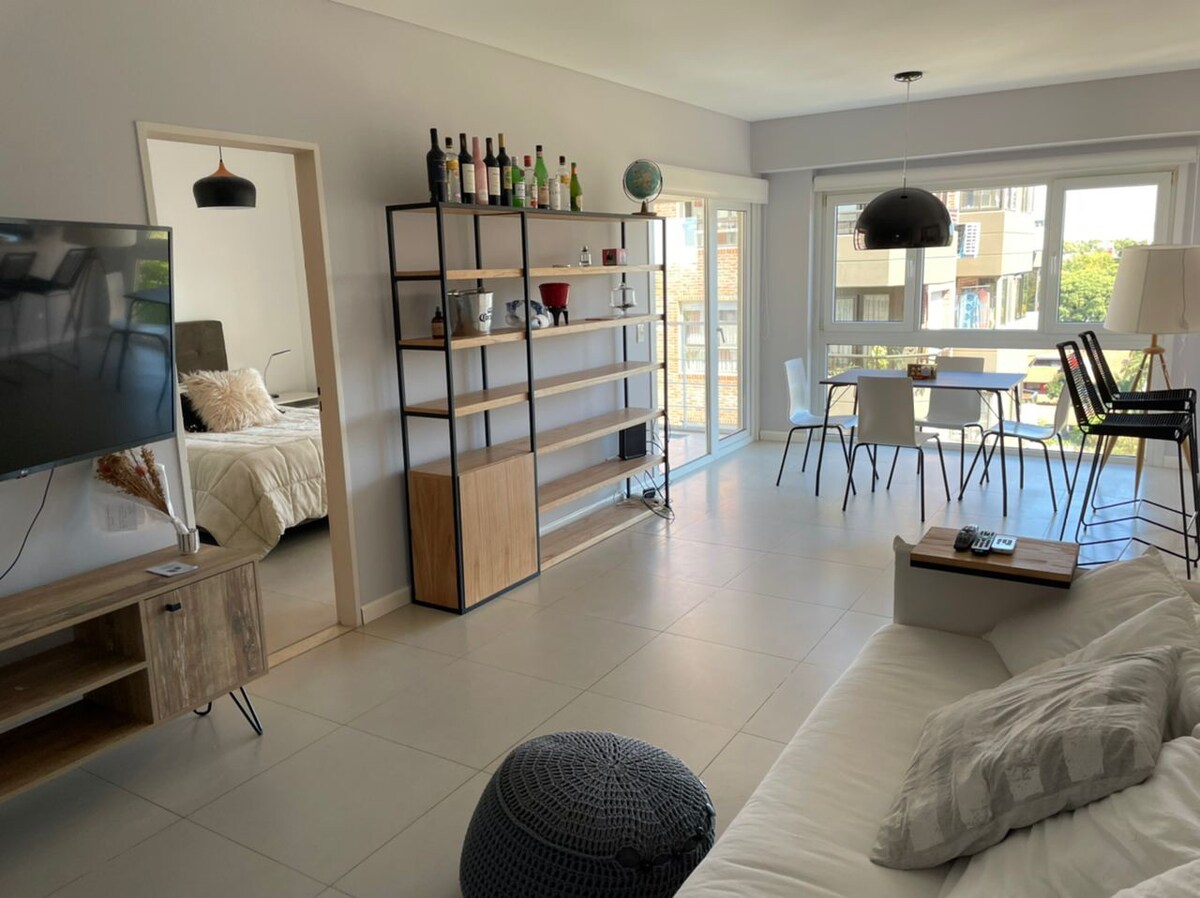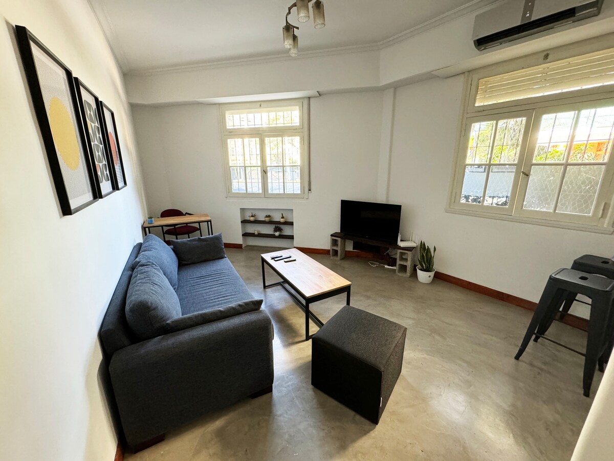 現代化且明亮的兩房公寓,配有一間雙人床臥室、整合式廚房、客廳和陽台,可俯瞰該地區最美麗的街道之一科里恩特斯街 (Calle Corrientes)。 它位於連接蒂格雷與雷蒂羅的火車站旁邊,距離奧利沃斯港不到兩個街區。周圍有各式各樣的餐廳和商店。配有冷暖空調、洗衣機、可收看 Netflix 和有線電視的電視以及 WiFi。
