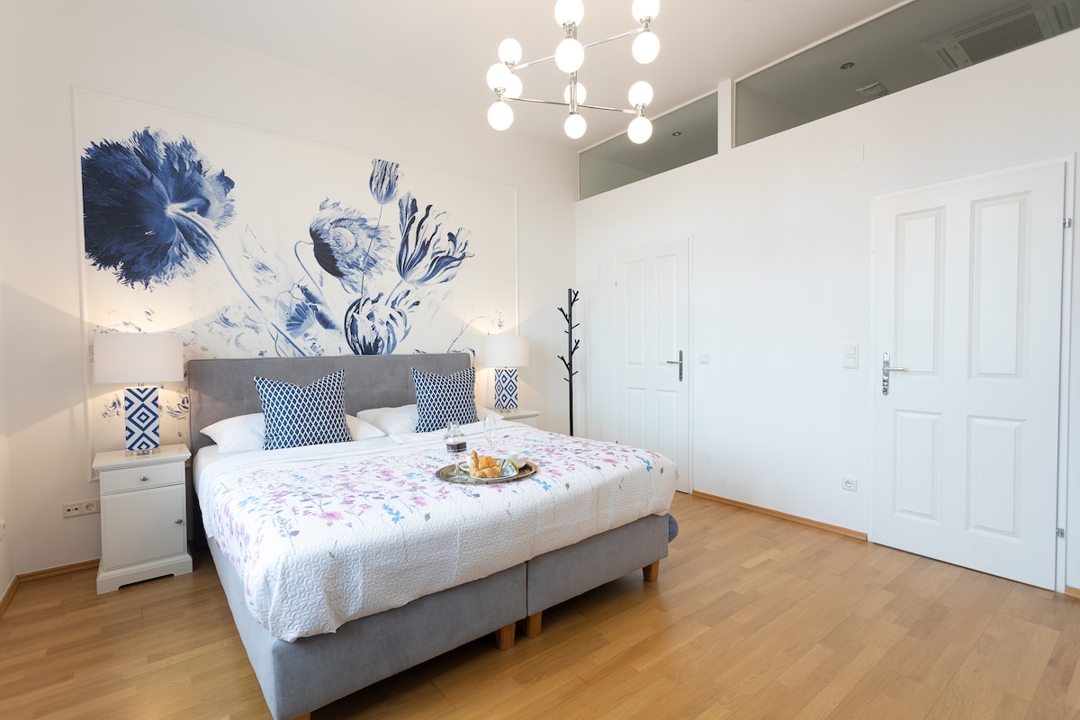 入住這個全新翻修的豪華綠洲,它坐落於一棟建於 1902 年、歷史悠久的壯麗建築內。 這套寬敞的城市公寓位於黃金地段,設有 2 間睡房、冷氣和 2 個露台。 距離 CAT 機場接送服務地點僅 5 分鐘路程,您可以輕鬆步行前往 Hundertwasser House、Stadtpark 和 Belvedere Palace。 聖史提反座堂也在附近。 盡情享受維也納傳統與現代高端舒適的完美融合,所有主要景點都近在咫尺!