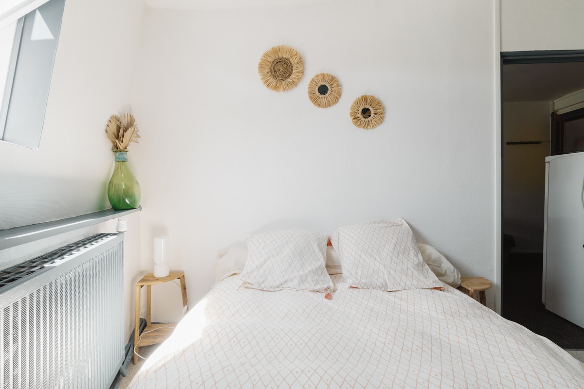 在私人封閉式花園中,來享受Ascq村的寧靜。 靠近所有商店(麵包店、家樂福市、煙草、餐廳等) 這間臥室(配有淋浴間)與我們的房子相連,有獨立入口。 距離埃倫湖( Lake Héron )僅一步之遙,距離阿斯克新城( Villeneuve d 'Ascq )大體育場3.5公裏(步行45分鐘)。 距離巴士50公尺(抵達地鐵)。距離Ascq站200公尺(乘火車10分鐘即可抵達裏爾)