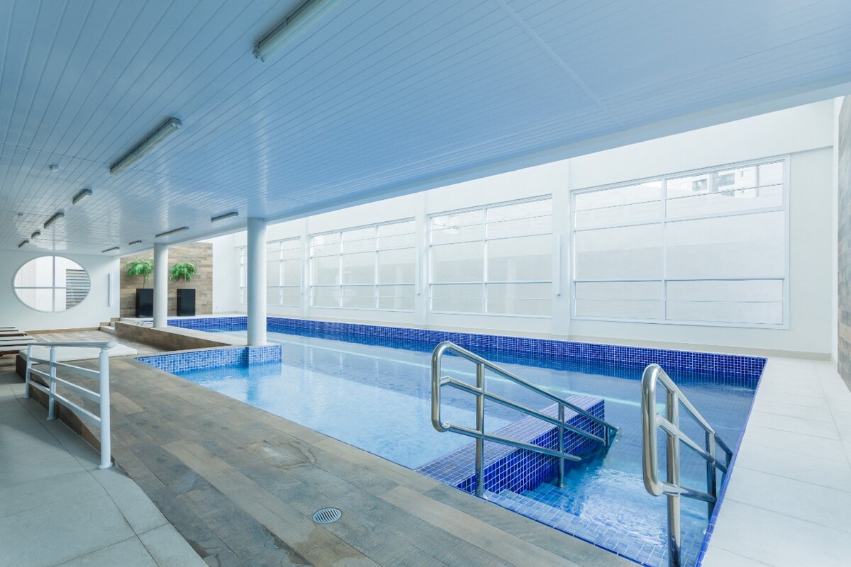歡迎來到這個全新的公寓,有 1 間舒適的臥室和 1 間套房,最多可供 3 人舒適入住。步行5分鐘即可抵達2個地鐵站和充滿活力的聖保羅夜生活以及這座城市所提供的一切。享受屋頂游泳池、500Mb Wi-Fi 和 50 吋電視,可觀看 Netflix 和 Amazon。我們提供必要的舒適性,讓您享受真正的城市體驗。無論是休閒還是商務,立即預訂這個戰略位置,充分享受您對聖保羅的訪問!