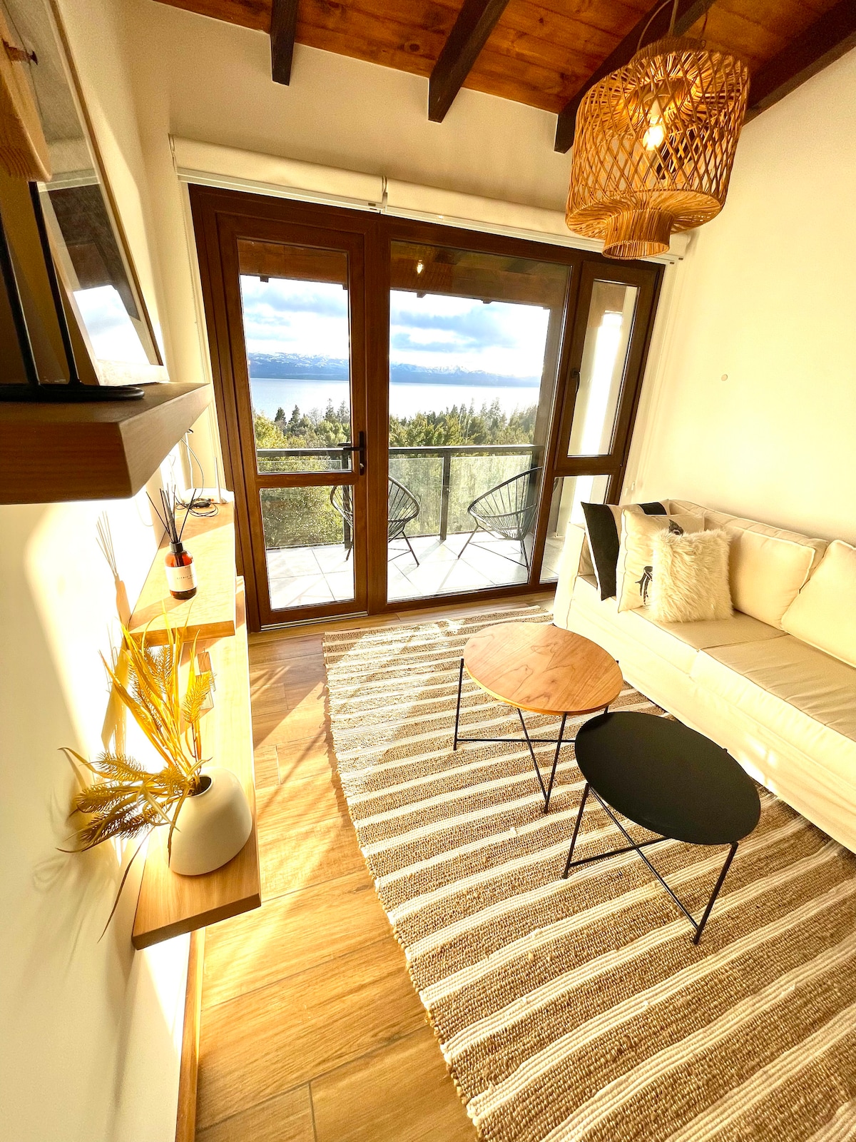 Este departamento, moderno, elegante y con gran espacio, es ideal para que tu viaje de a dos sea inolvidable! Podrás disfrutar de una amplia vista panorámica hacia el lago Nahuel Huapi y las montañas de fondo, con el cielo en todo su esplendor! Su estratégica ubicación, hace que estés a menos de 20 minutos del Aeropuerto, a poco más de 1 km de la Terminal de buses y del Centro, y a 200 metros del camino de la Costanera, desde donde apreciarás el imponente lago y las montañas. Te esperamos!!!