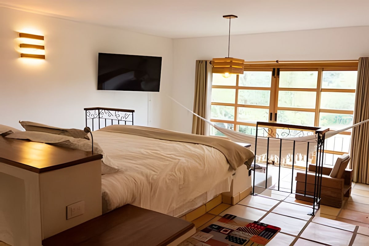 A solo 10 minutos de Villa de Leyva, disfrutarás de un apacible descanso enmarcado en una hermosa vista hacia las montañas, una agradable caminata por sus jardines y en las noches, podrás contemplar el cielo estrellado a la luz de la luna. No puede faltarte un relajante baño en el Jacuzzi y por qué no ? una cena romántica para celebrar los mejores momentos y en la mejor compañía
