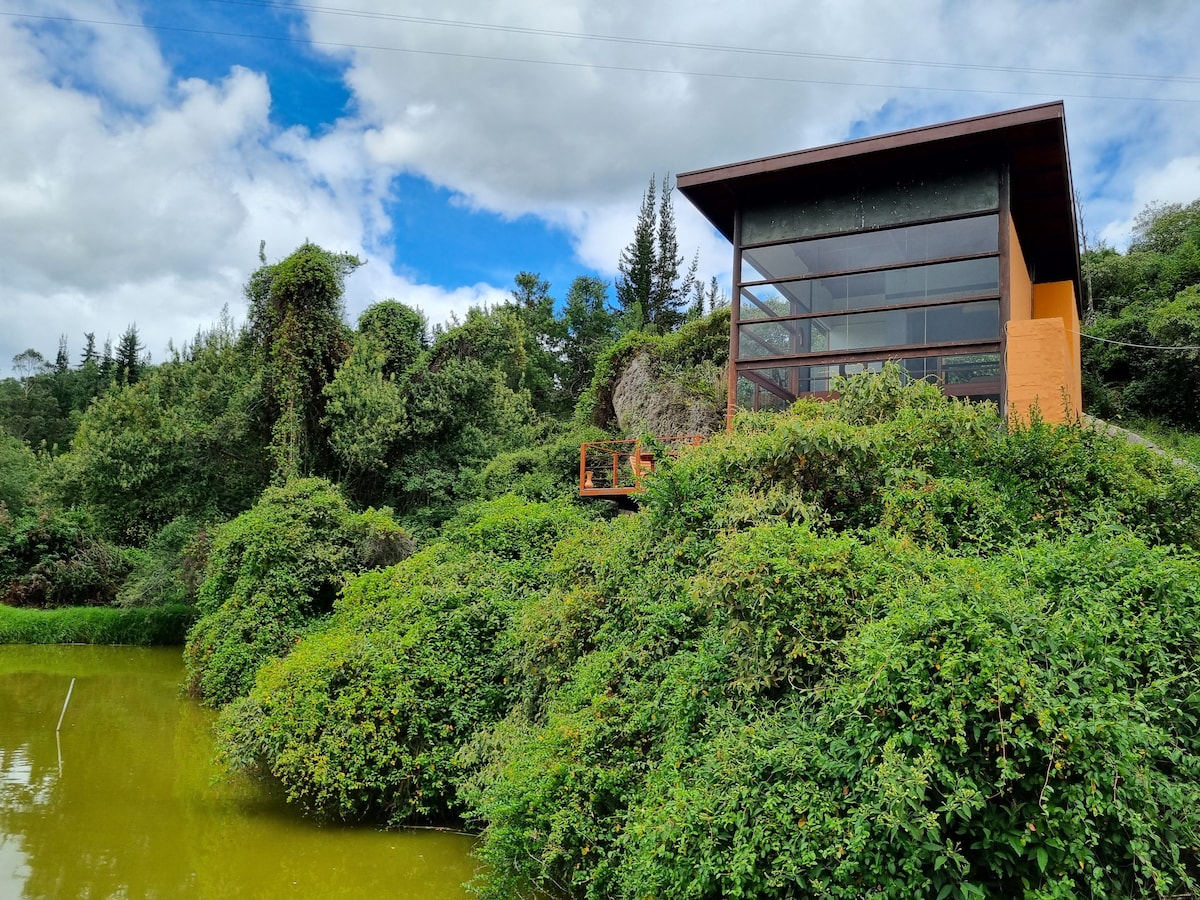 Tomate un descanso y prende la chimenea. Relajate en esta cabaña rodeada de pinos desde donde puedes caminar por montañas y valles o trabajar desde tu computador o leer, rodeado de tranquilidad y naturaleza. Cocina en el BBQ externo, con una linda vista de los farallones de Sutatausa! Disfruta la Vida en este territorio privilegiado.