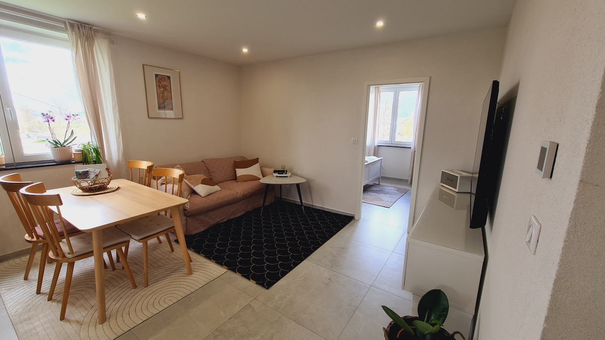 Fully renovated 1BR apartment steps from Basel Tram 3 (Soleil) – just 20 min to downtown Basel! St. Louis train station is 5 min away with shuttle bus 11 direct to Basel–Mulhouse Airport (€3). Walk 1 min to local restaurants or 10 min to St. Louis center with shops & dining. Carrefour Express supermarket nearby. Free street parking included – perfect for travelers seeking comfort, convenience & easy airport access.