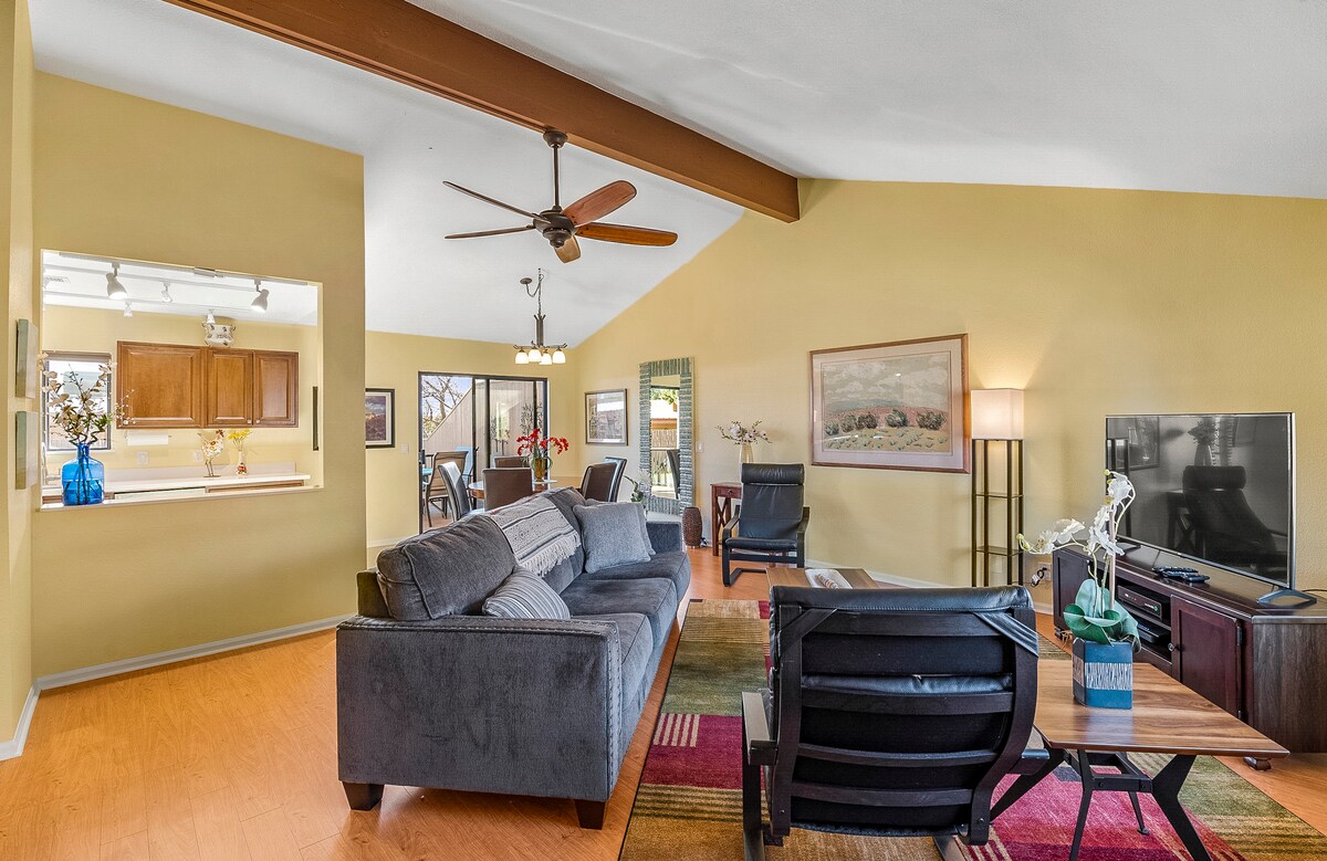 A quiet, bright, spotless studio in the CENTER of Sedona! Walk to trailheads, Sedona Shuttle, restaurants, Posse Grounds events park. King bed and Spa shower gets rave reviews. Fast Wi-Fi, smart TV, washer/dryer, kitchenette, coffee selections, Aveda products. Upgrades galore. Park your car just steps from guest patio. Easy self-check-in. Organic and fragrance-free products. Airport Mesa trail 5 min • Soldiers Pass Trail 7min • walk to Whole Foods & pickleball courts. Hummingbirds up close!