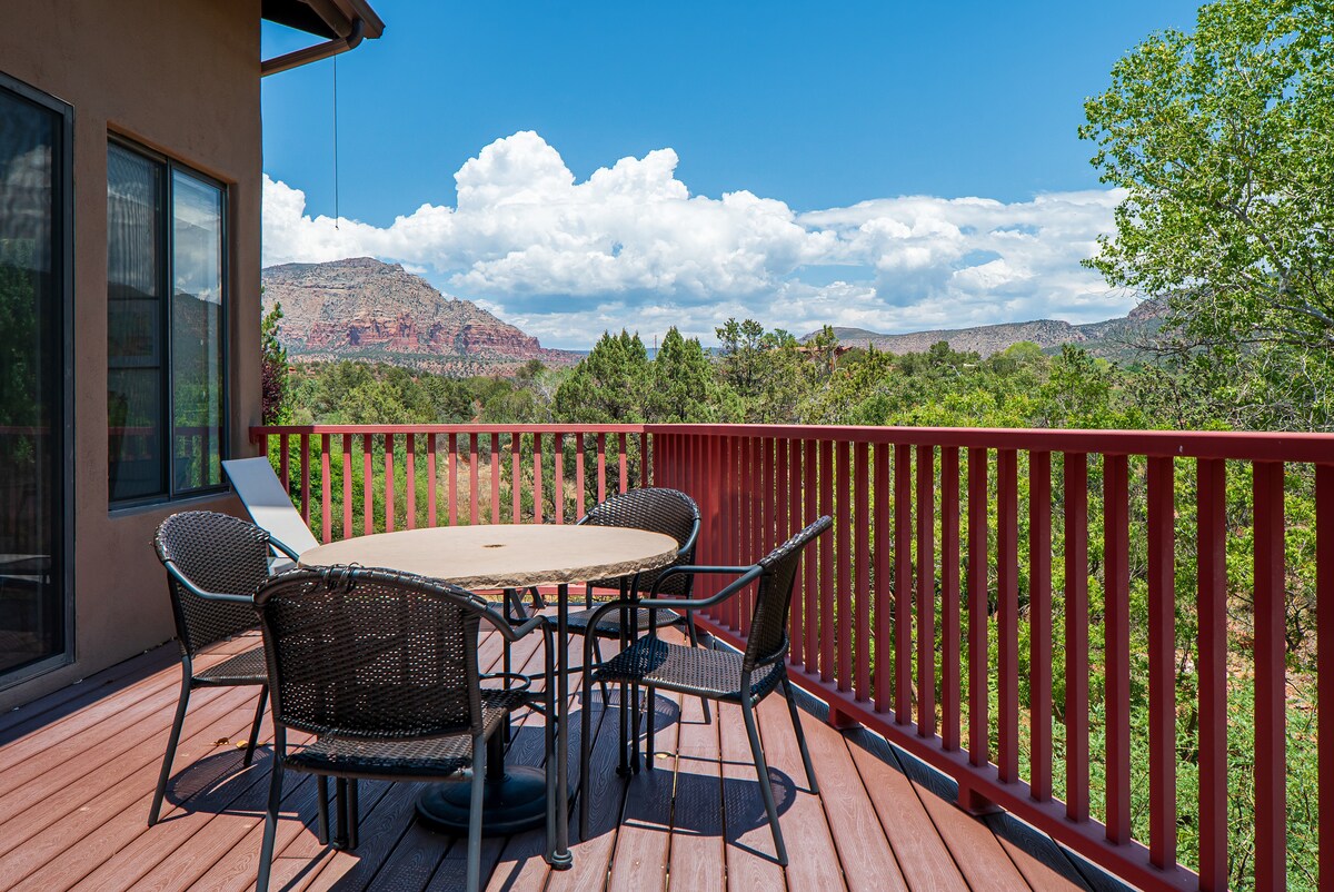 全新、精美的Sedona房源,景觀令人難以置信。從大露臺和房子的每個房間觀賞日出。坐落在鋼柱頂部,可最大限度地欣賞景觀。 這所房子的每個部分都旨在將外面帶入室內。 Sedona Reflections也是情侶的完美度假勝地。如果您需要一位官員在我們的天空甲板上監督您的誓言,請向我們詢問詳情。