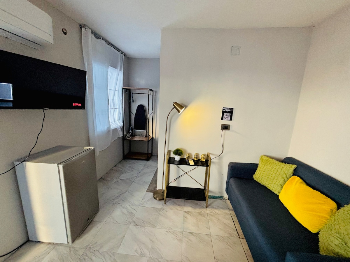 Es un departamento con acceso independiente, consta de una amplia recamara con cama kingsize , disfruta de una estancia completamente privada donde puedes crear momentos inolvidables, consta ameniades propias de la habitaciôn con panatalla smart tv de 55", aire acondicionado, baño, espacio muy agradable, cuenta con sillones de star con su mesa de centro y un sillon multiposicional, un lugar ideal para descansar y hacer una recarga de energia.