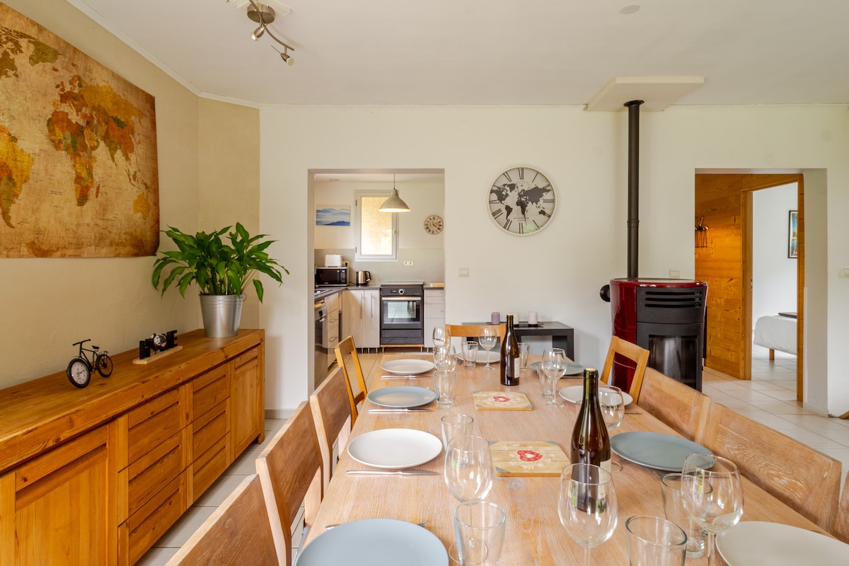 超級寬敞的別墅,可容納11人,非常舒適,包括5間臥室,配有優質床上用品、2間浴室、寬敞的客廳和大型免費停車場。 Il四周環繞著山脈和綠色植物。 位於Oisans山脈的中心,步行6分鐘即可抵達村莊中心。 從山谷電梯開車10分鐘: Huez Express gondola連接滑雪度假村Alpe d 'Huez 和l 'Eau Dolle Express。 Venosc gondola連接les 2 Alpes滑雪度假村。