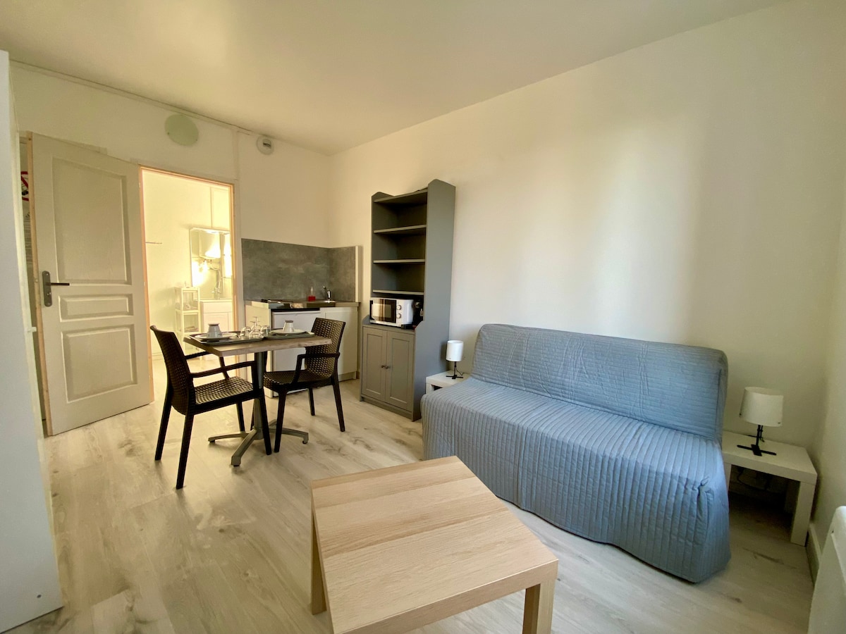 歡迎來到 Studio René!舒適優雅,讓您在梅斯的住宿非常舒適。位於梅斯市中心附近的區域,您可以在大樓下方免費停車。無論您是入住一晚或一週,這套單間公寓都設備齊全,就像住在飯店一樣,但更好。 這間全新裝修的單間公寓設備齊全,最多可容納 2 名成人和 1 名嬰兒(嬰兒設備可應要求提供)。