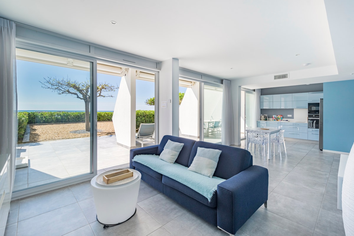 T2 48平方公尺+ 10平方公尺露臺(避風/雨) ,位於右岸安靜的海灘上,在第一線。 所有客房均享有海景。 2015年豪華住宅。2個遮蔽/安全停車位。 自行車存放。進入住宅是完全安全的,有電話、入口密碼和保安。 靠近商店:步行3分鐘即可抵達麵包店、肉店、雜貨店、煙草機。 沿著海灘步行150-300公尺即可抵達港口、市中心和餐廳。