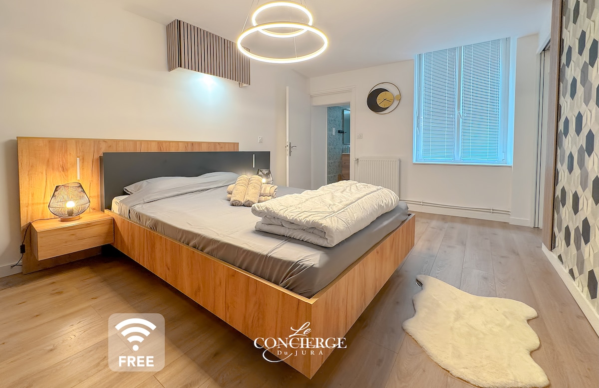 這間位於隆勒索尼耶市中心的寧靜住宿,無論是一位或多位工人、情侶或家庭度假,都能為您提供全面的舒適。 位於隆勒索尼耶市中心,地理位置優越,靠近所有便利設施,是前往市內所有景點的理想地點,由於位於市中心,您可以探索汝拉山脈,或安靜地工作。 我們很高興歡迎您來到汝拉,並回答您的問題!