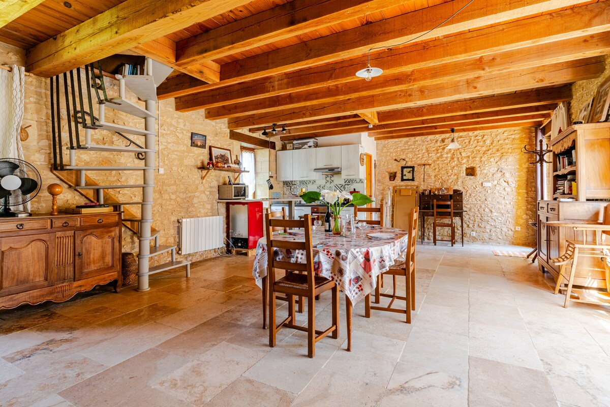 漂亮的小屋,有橫樑和外露的石頭,剛剛在2019年11月翻新 停車位和入口通往私人私人庭院花園,有遮蔭的用餐露臺和您自己的按摩浴缸。 法式門進入房屋 廚房設備齊全,休息室配有非常舒適的家具和漂亮的法國古董, Vezere河距離我們自己的土地只有50公尺,非常適合獨木舟、野外遊泳和野餐 開車2分鐘即可到達令人驚嘆的中世紀村莊,距離薩爾拉中心25分鐘