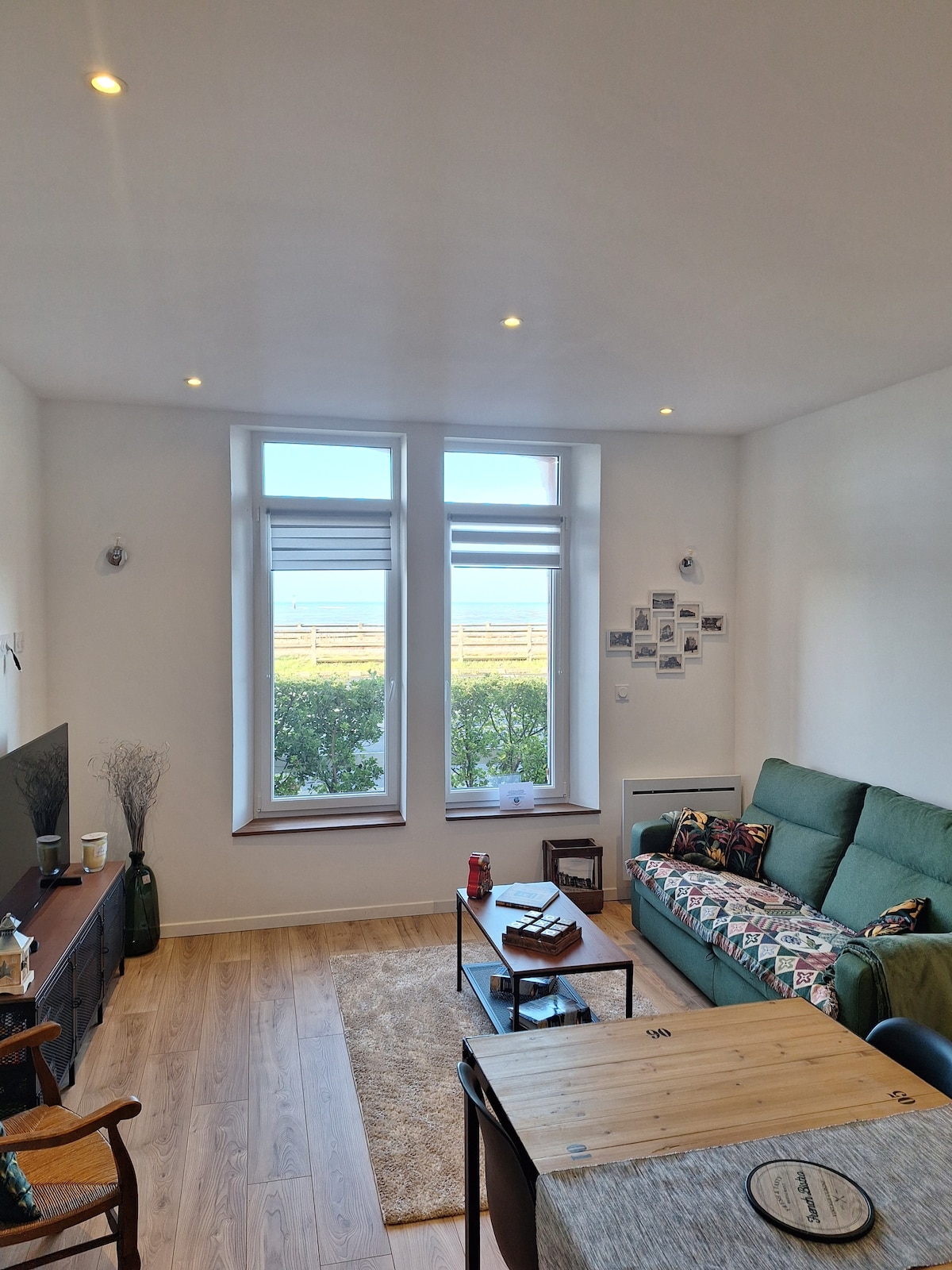 非常漂亮的明亮公寓,全面翻新,可欣賞壯麗的海景、迪韋河口和卡布爾角。 設備齊全,舒適,您可以與家人或朋友一起享受美麗的客廳,配有設備齊全的廚房和漂亮的休息區。 2 間漂亮的臥室:1 張加大雙人床/兒童雙層床(90 x 175)。 提供枕頭和被子,並附有保護套。 可根據要求提供額外的床單和毛巾(不包含在價格中)。