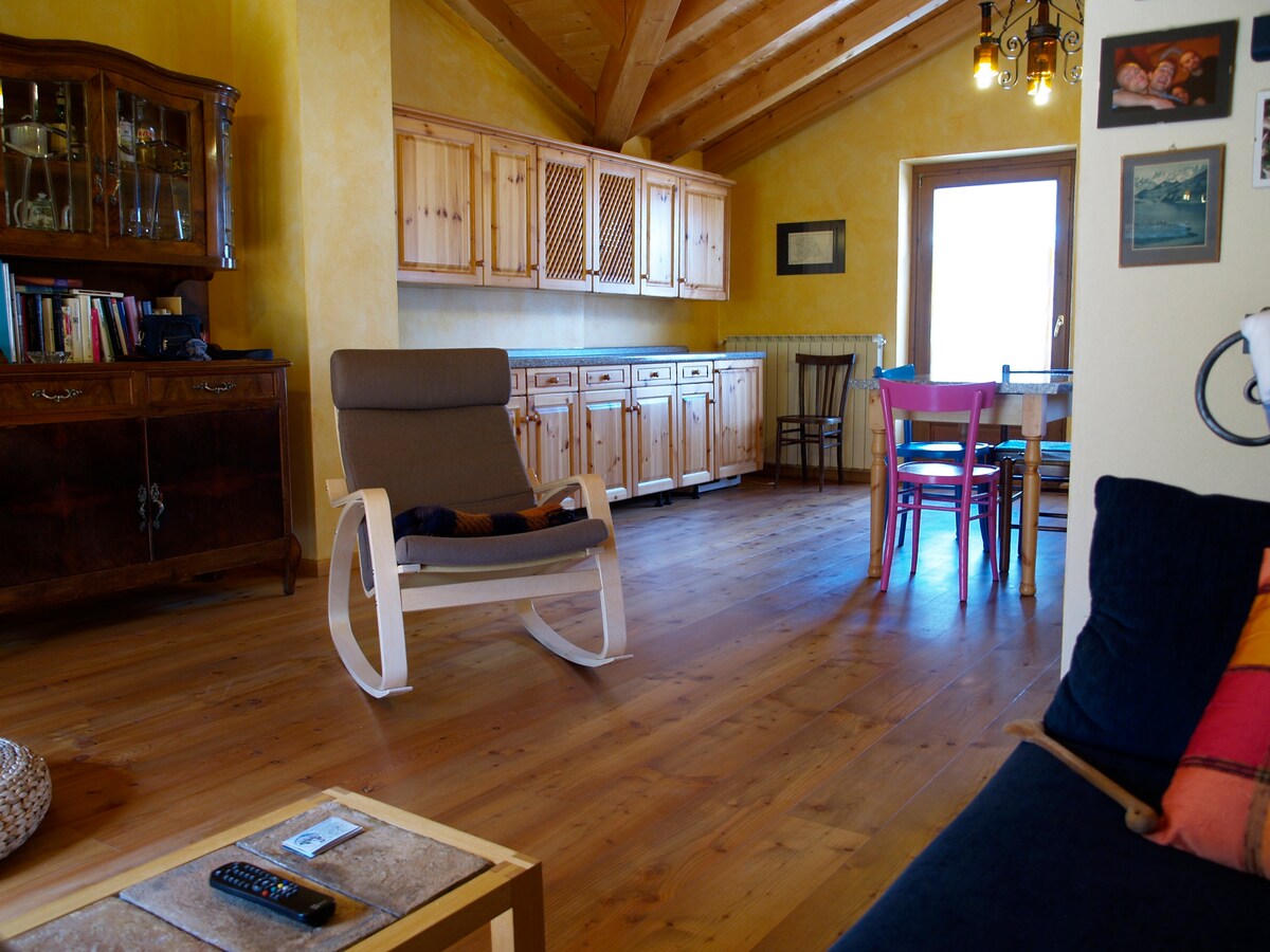 Relax yourself in the "Viola's nest", a welcoming apartment with wooden ceilings in all rooms, equipped with a romantic mezzanine and a fully equipped kitchen. Admire the magnificent view of Presolana from the delightful balcony, perfect for observing the mountains in total tranquility. Enjoy the view, spectacular in every season, with the colors changing from the intense green of summer to the whiteness of the snow in winter, they offering a unique experience, surrounded by majestic nature.