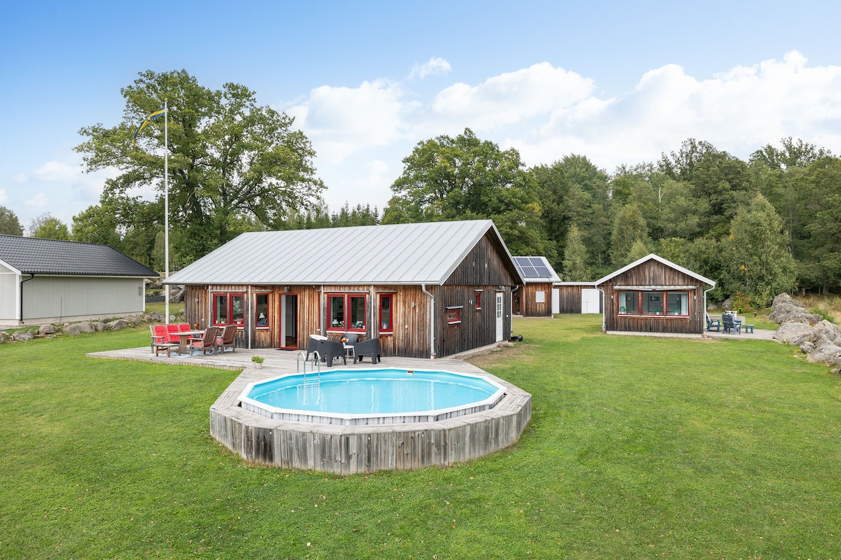 Semesterhus på landet med Pool och Sjöutsikt