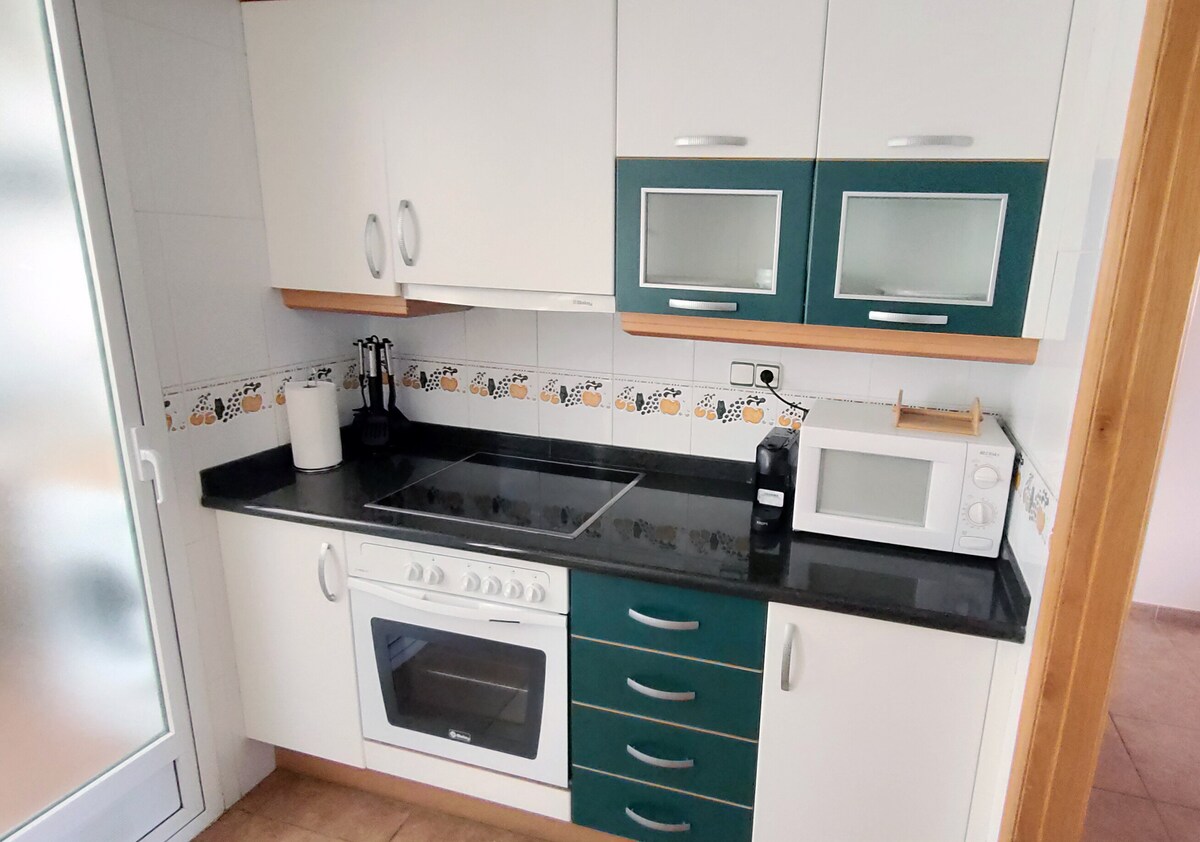 60平方公尺的明亮公寓,距離大海50公尺,步行5-10分鐘即可抵達Vinaròs和商店。 公寓屋頂上有一個朝南的陽臺和一個32平方公尺的私人露臺,可欣賞海景 位於維護良好的住宅內,您將享受兩個遊泳池和寬敞的綠色空間。 包括WiFi和有遮蔽的私人停車位和dolce gusto咖啡機。