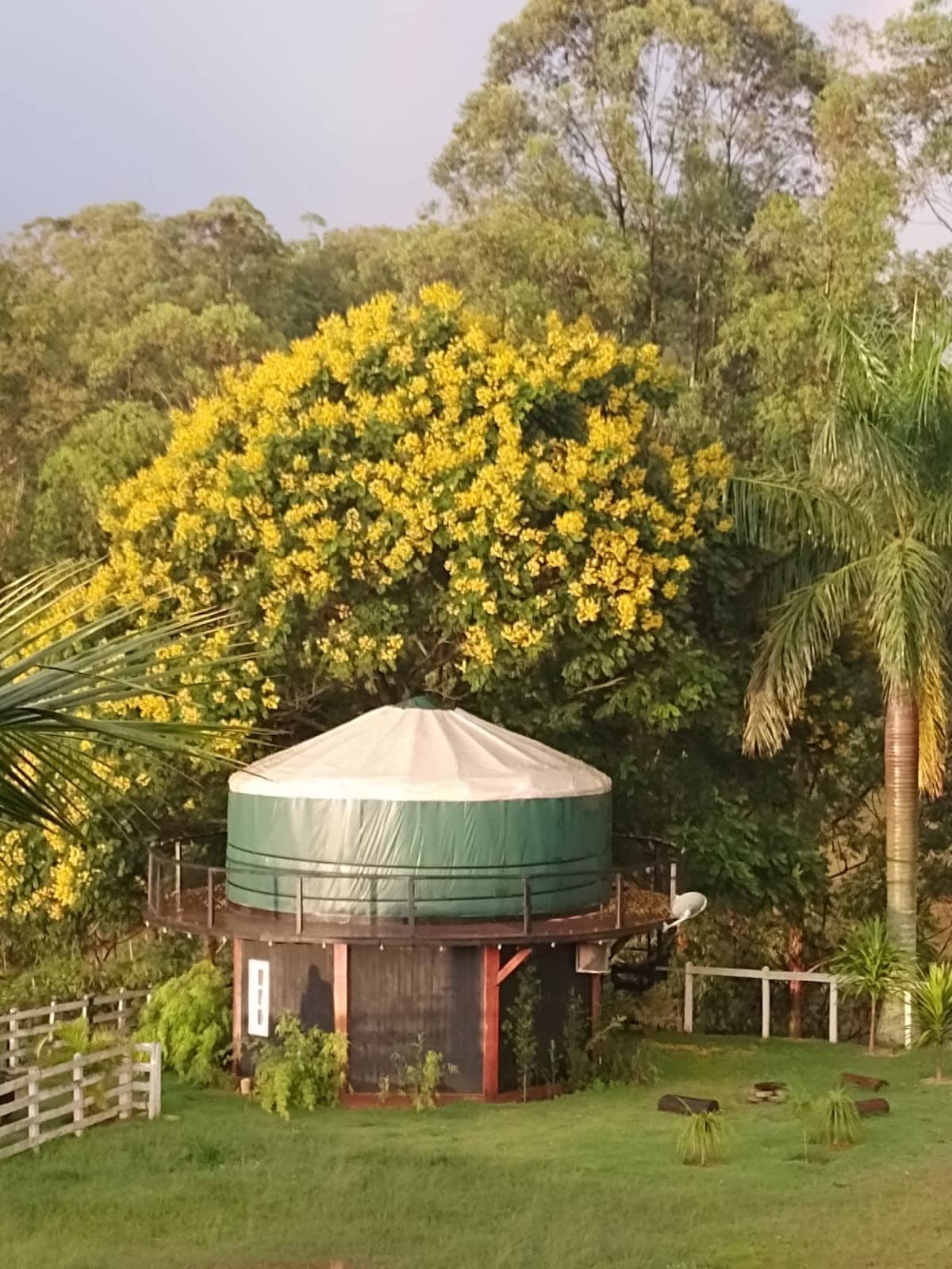 Yurt árvore ,nosso segundo Yurt, construído a sombra de uma arvore, angelim amarelo, muito acolhedor. Depois do sucesso do Yurt Haras, creio que construímos algo tão charmoso, romântico e espaçoso, são 80 metros interno e 50 metros de deck para visualizar a linda natureza do local. O primeiro Yurt foi construído em 600 a.c., muita história, venha aproveitar. História, arquitetura e romantismo associada a natureza e uma forma diferenciada de viver...venha se hospedar no Yurt Tree e Yurt Haras.