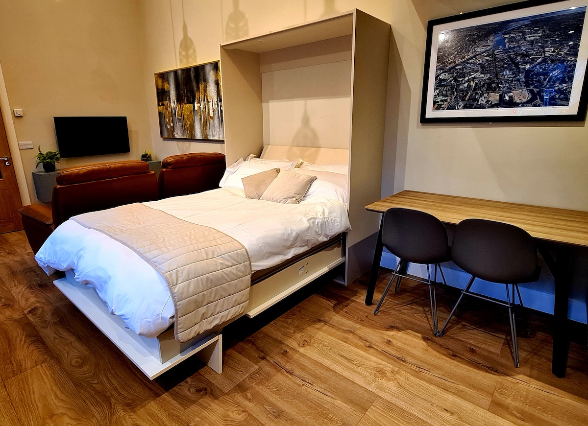1張床安全一樓公寓,裝飾雅緻,有自己的門,小型私人庭院、停車位、廚房、高速寬頻、智能電視(登入您的netflix等)瓦斯火、臥室、走廊/浴室(浴缸淋浴)距離科克歌劇院1/2英里,下坡步行20分鐘即可抵達市中心(車程3/4分鐘)火車站步行20分鐘,車程5分鐘/布萊克浦海濱度假村車程5分鐘,私人位置,但靠近市區,適合兩位成人入住。 不適合兒童入住。 前往旅居的陡坡