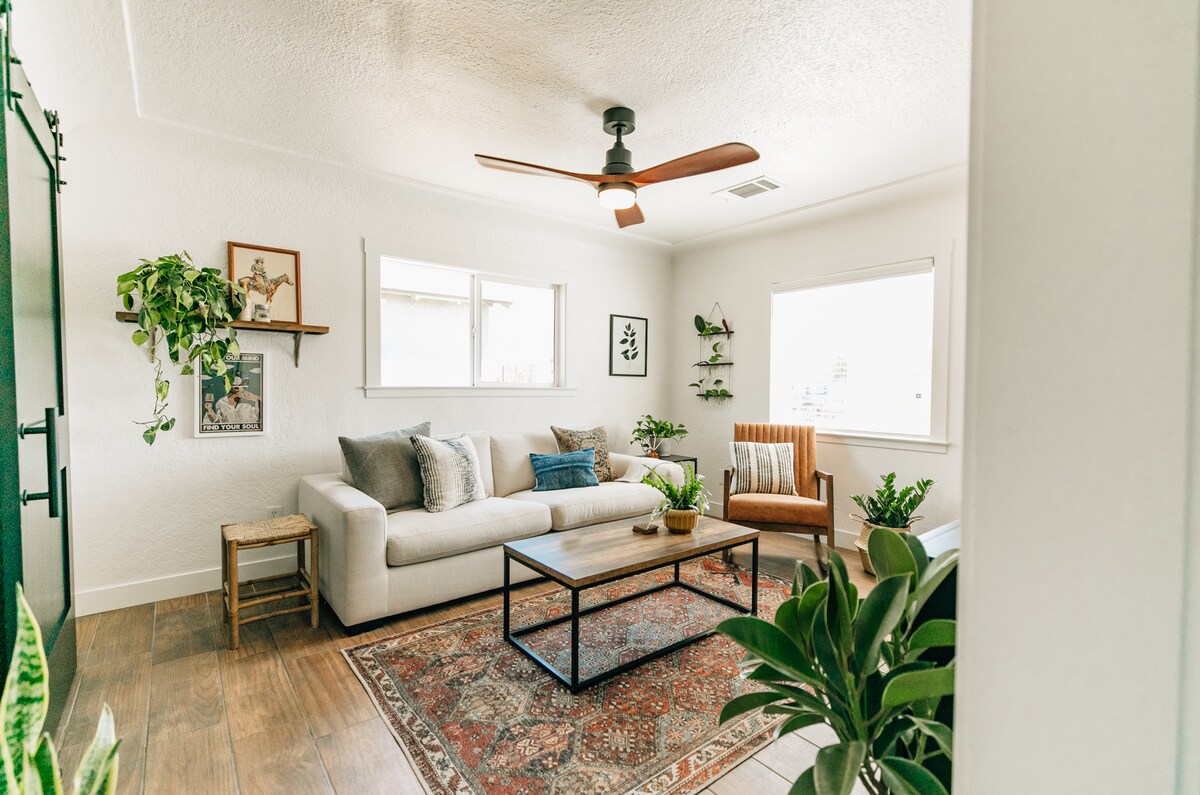 享受這座位於維塞利亞市中心的1930年代標誌性平房的舒適和魅力。這間時尚的房源擁有原始的硬木地板、2 張床、2 間衛浴和迷人的餐廳。享受如家一般舒適的房源,配有私人洗衣房和設備齊全的廚房!距離紅杉國家公園( Sequoia National Parks )僅45分鐘車程,距離主街的餐廳和購物中心不到一英里,距離Kaweah Delta Hospital不到5分鐘車程,適合旅行護士/專業人士。來放鬆一下吧!