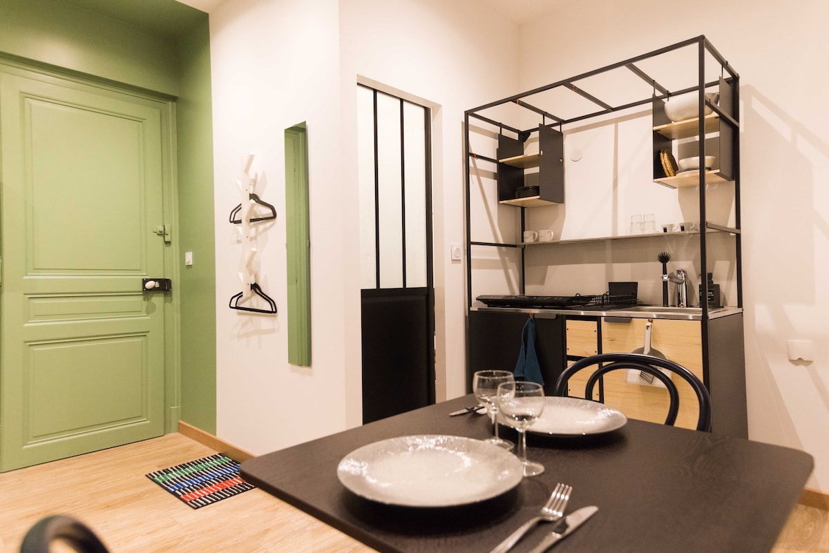 享受時尚住宿美麗的單間公寓,全新和現代化25平方公尺的3星級。 明亮寬敞,有兩張躺椅,坐落在市中心的19號翻修公寓內。 所有商店(麵包店、肉店、餐廳、小酒館、糕點店、巧克力工廠、餐廳、報紙、花店、理髮店、火車站)以及護理單位(醫生和藥劑師)不到200米。 提供毛巾和牀上用品。