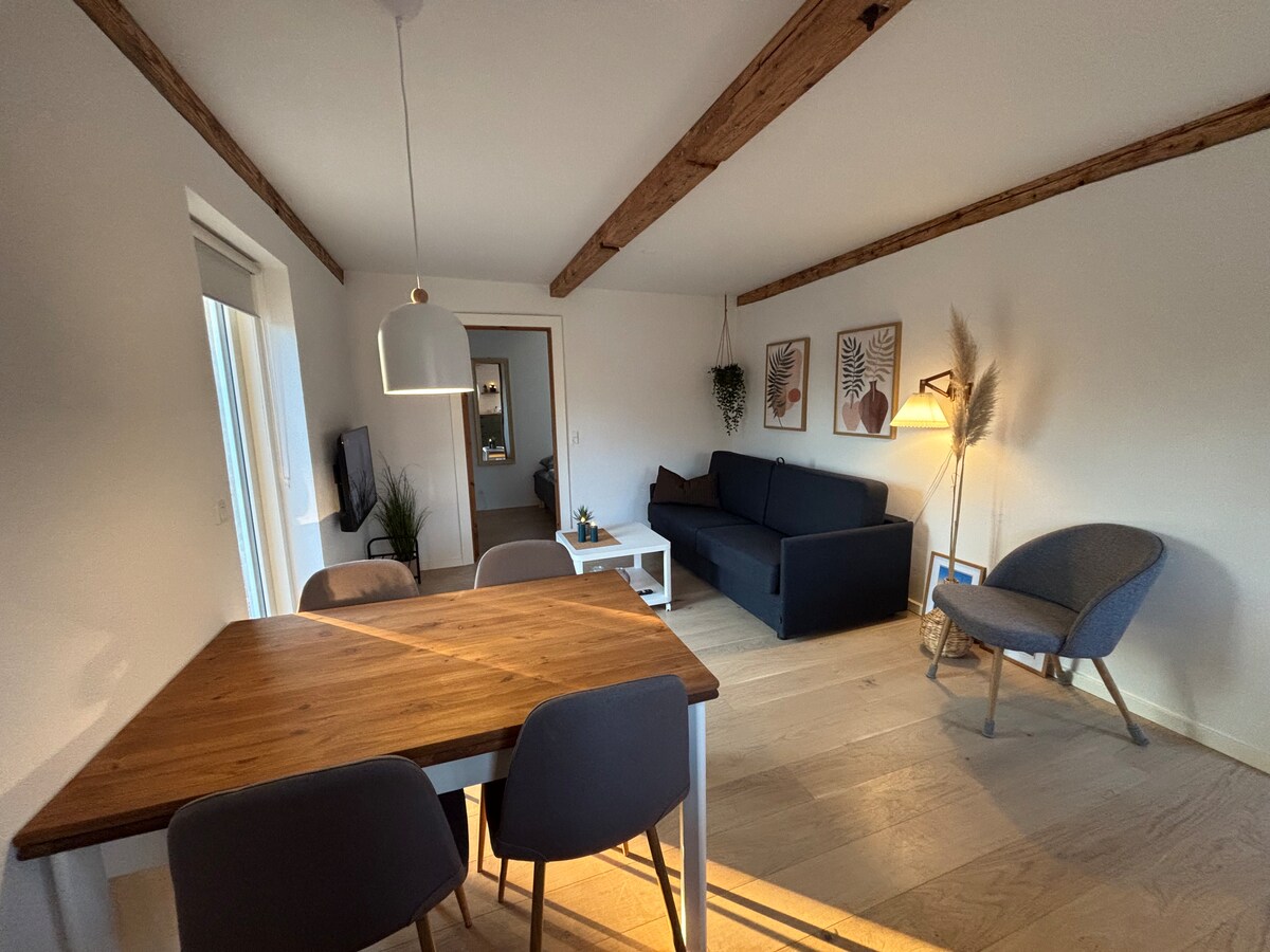 Light and Nordic inspired studio located close to Vordingborg center and marina. Quiet area, free parking and both nature and town outside the door. Our basement apartment offers everything you need for a 2 persons stay. The kitchen is fully equipped for small meals, there is a smaller dining area in the room, along with a double bed. Toilet separate from the bathroom and laundry facilities in connection with the bathroom. Private entrance with key box in case we are not home to greet you.