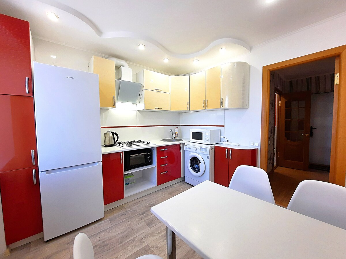 Cosy and nice apartment is situated in the very center of Poltava, in the new building with elevator. Within 3 minutes walk to Monument of Glory and Corpusny park. There are some good cafes, restaurants and grocery stores nearby.