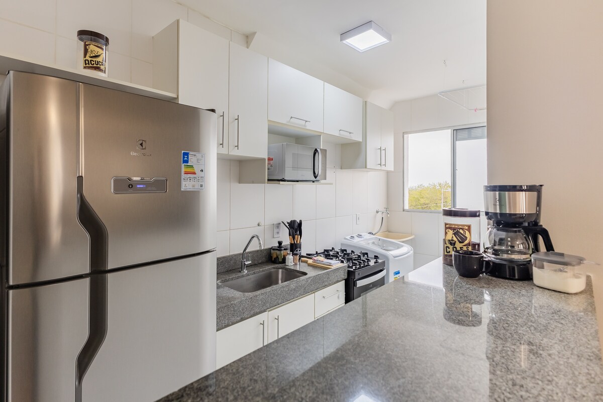 Sinta-se em casa neste espaço completo e acolhedor, a apenas 6 minutos do Iguatemi Business. A cozinha é equipada com fogão, geladeira, micro-ondas e utensílios. A sala possui sofá de três lugares, TV e internet de alta velocidade. O quarto conta com cama de casal e guarda-roupa. Banheiro com box e ambiente agradável. Ideal para quem busca conforto, praticidade e boa localização. 🌿✨