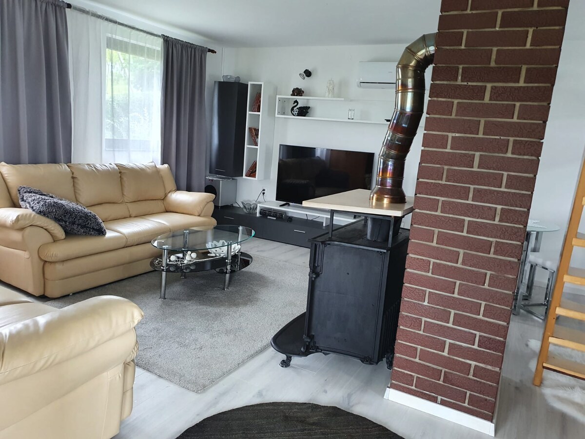 這間 333 平方米的現代化公寓最多可容納 3 人。它包括一間配有雙人床和額外暖氣的臥室、一間配有沙發床的客廳、一間配有電磁爐、咖啡機、熱空氣油炸鍋、洗碗機和洗衣機的廚房。浴室有地暖,空調可供暖氣和冷氣。公寓提供免費 WiFi 和 50 吋電視,以及免費停車位。非常適合情侶、家庭或小團體入住。