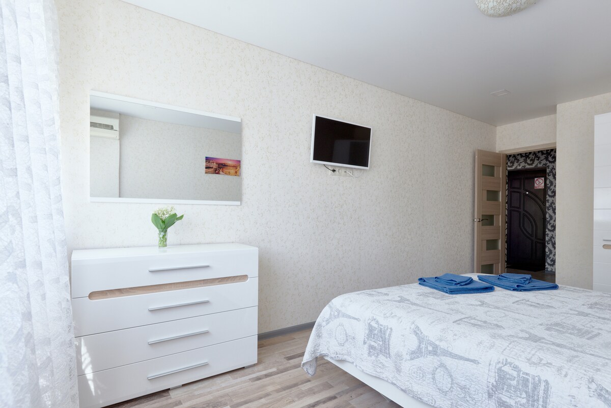 全新、寬敞、舒適且非常時尚的公寓(LOFT)。公寓有2張雙人床和1張沙發床。新房子、有警衛的免費停車場、兒童遊樂場、體育場。公寓配備了舒適生活所需的所有電器:空調、微波爐、烤箱、洗衣機、吹風機、熨斗、電視。