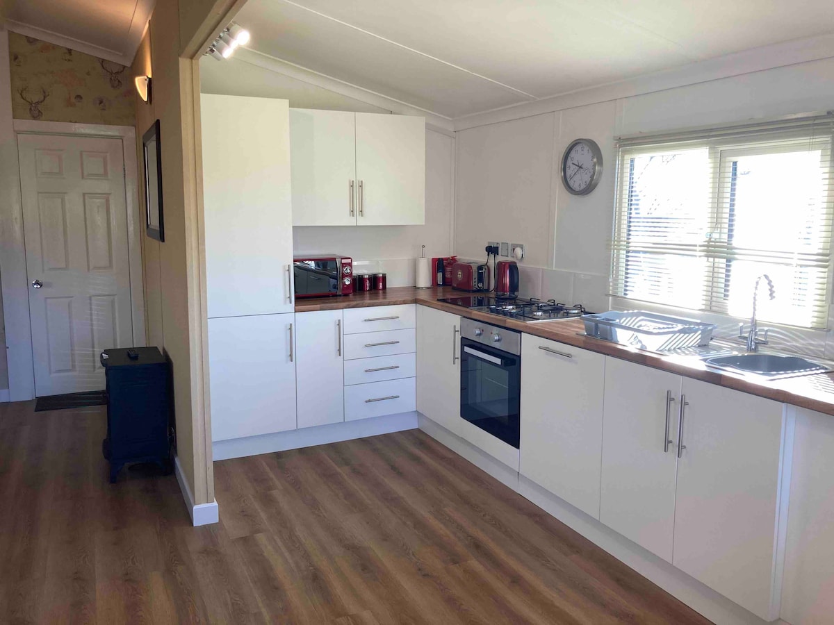 Quakerfield lodge位於Hurst Green漂亮村莊的郊區。開放式內部擁有寬敞的客廳,配有兩張大沙發。廚房配備了您可能需要的所有電器,為您的伴侶烹飪一場風暴。小屋後面是寬敞的加大雙人床臥室。房源前面是一個大露臺區域,配有按摩浴池,享受奢華的景點