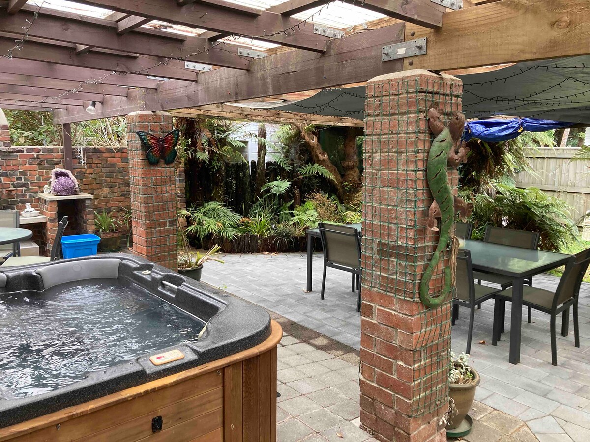 在我們寬敞的2間臥室(一樓)公寓(業主住在樓上)放鬆身心 一個令人驚嘆的有蓋區域,您可以在此享用飲品、泡湯、烤肉,並享受周圍的寧靜氛圍! 無論天氣如何! 在羅托魯瓦市,有很多旅遊、運動和餐廳。 距離大多數活動和Int.Stadium僅幾分鐘路程。 注意:不適合兒童、輪椅、不穩定的房客或寵物入住。