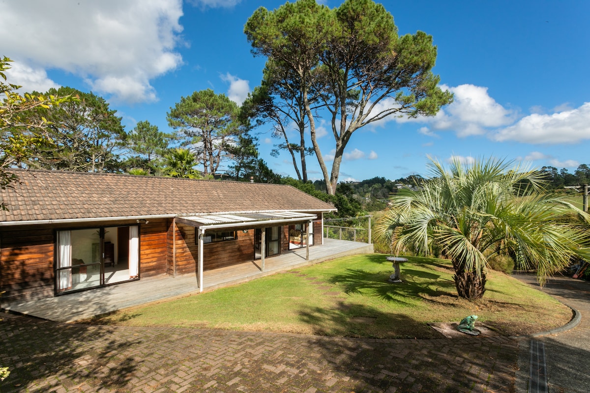 入住這個舒適的小屋,與主屋半獨立,自給自足,配有簡單的烹飪設施。 樓上有標準雙人床,螺旋樓梯可帶您下樓前往有壁爐的起居區。 聆聽當地鳥鳴和斯旺森溪流的聲音。主屋內有令人驚嘆的景觀、水療/按摩浴池和桑拿房,以及一張撞球桌。 這個僻靜的度假勝地坐落在當地的熱帶雨林中,距離高速公路僅10分鐘,距離貝特爾斯海灘(Bethells Beach)僅20分鐘。