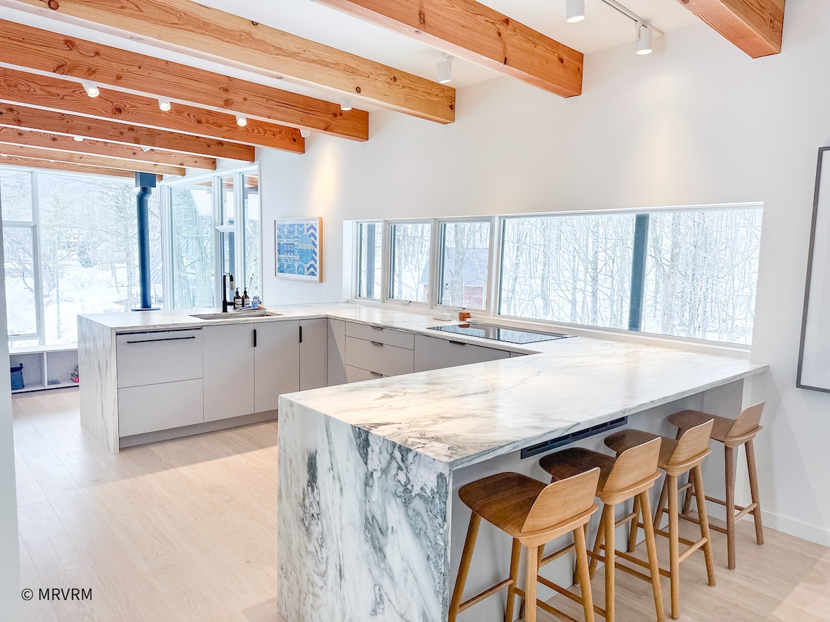 在這個「平屋頂三角屋」中醒來,欣賞Sugarbush的壯麗景色。四間臥室、一間睡眠閣樓、三間浴室、兩間客廳、一間餐廳、一間新翻修的廚房、一個配有WiFi的辦公區域、兩個露台(一個配有瓦斯烤架)和一個洗衣房/遊戲室,為家庭聚會提供充足的空間。 距離市區3分鐘。不適合小孩/幼兒或行動不便的房客入住。 在夏季,我們只出租6晚以上的住宿,星期五更換。