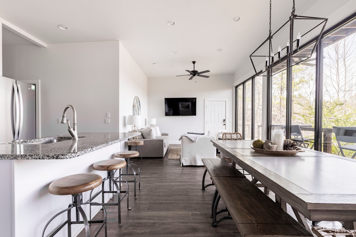 山頂世外桃源:史密斯湖附近的浪漫小木屋 Hilltop Hideaway隱藏在大自然中,是一個重新設計的魚營,變成了一個情緒化、浪漫的度假勝地,鄉村魅力與有意奢華相遇。 原木地板和外露的樑木展現其歷史根源,而現代化的裝修則營造出舒適、高級的度假勝地。 享受私人備有食物的池塘、按摩浴池、營火炉、室外淋浴間、吊床和放鬆的泡澡浴缸——非常適合放鬆身心、增進情感,並享受難忘的住宿體驗。