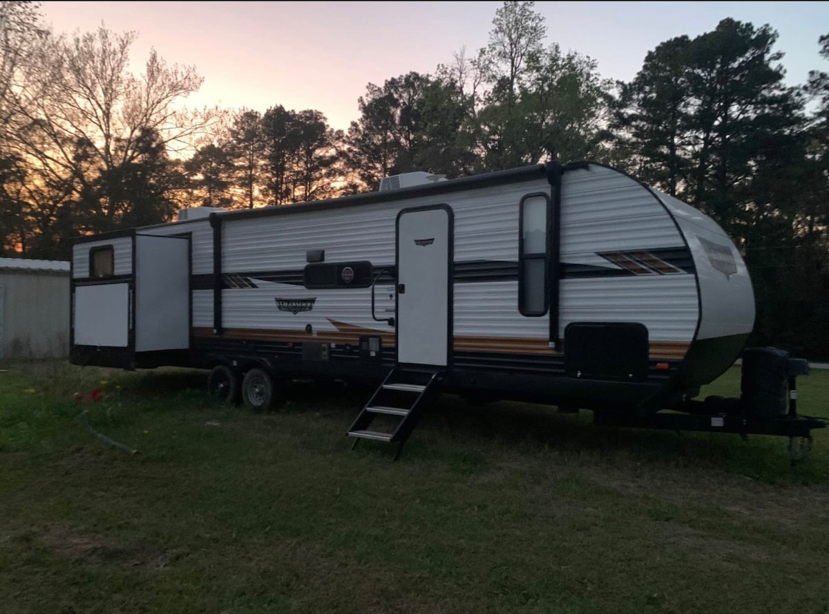 Nice quite camper stay out side of town located near Sam Houston national forest. 10 minutes from SHSU 15 minutes from Huntsville state park. Parked on private 5 acre lot.