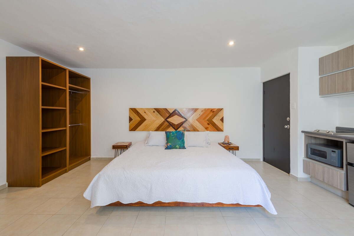 入住這間位處中心地段的房源,享受這裡的時尚品味。 地理位置非常好,距離海灘5分鐘車程,但位於坎昆市中心,步行即可抵達您需要的一切。 無需在這裡租車! 精心設計,無盡的夜晚,思考我們在外出一天後所尋找的東西-高速網路、強大的空調、舒適的床、極佳的淋浴壓力、充足的空間放鬆身心和設備齊全的廚房。