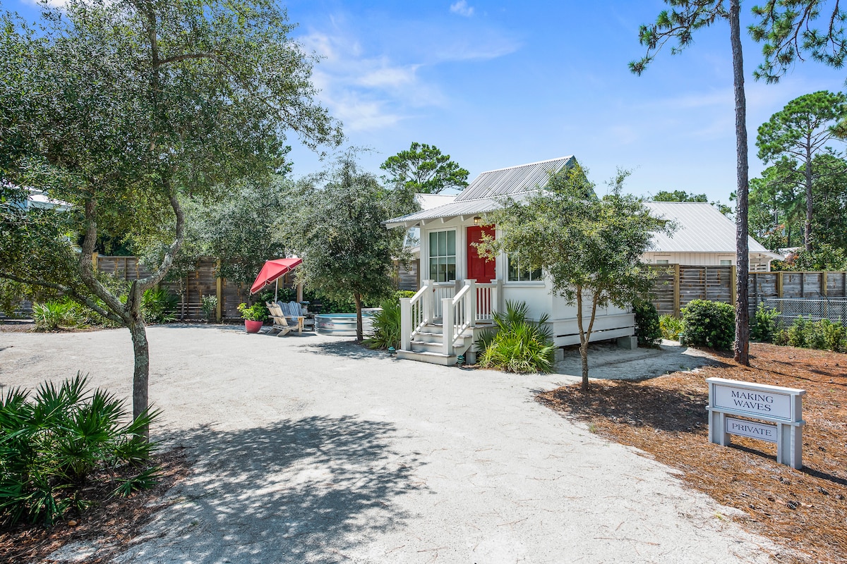 It is THE tiny house of 30-A! 'Making Waves' is the most CHARMING house, full of character and just steps to the Seagrove public beach access, Seagrove Market and Surfing Deer restaurant! Just a short walk to Publix in WaterColor! This home comes fully equipped with its own private stock tank pool for hot summer days, string lights for ambiance, a BBQ for grilling out, outdoor shower + full washer/dryer, claw foot soaking tub, queen size bed, TV, and more! 2 bikes included!