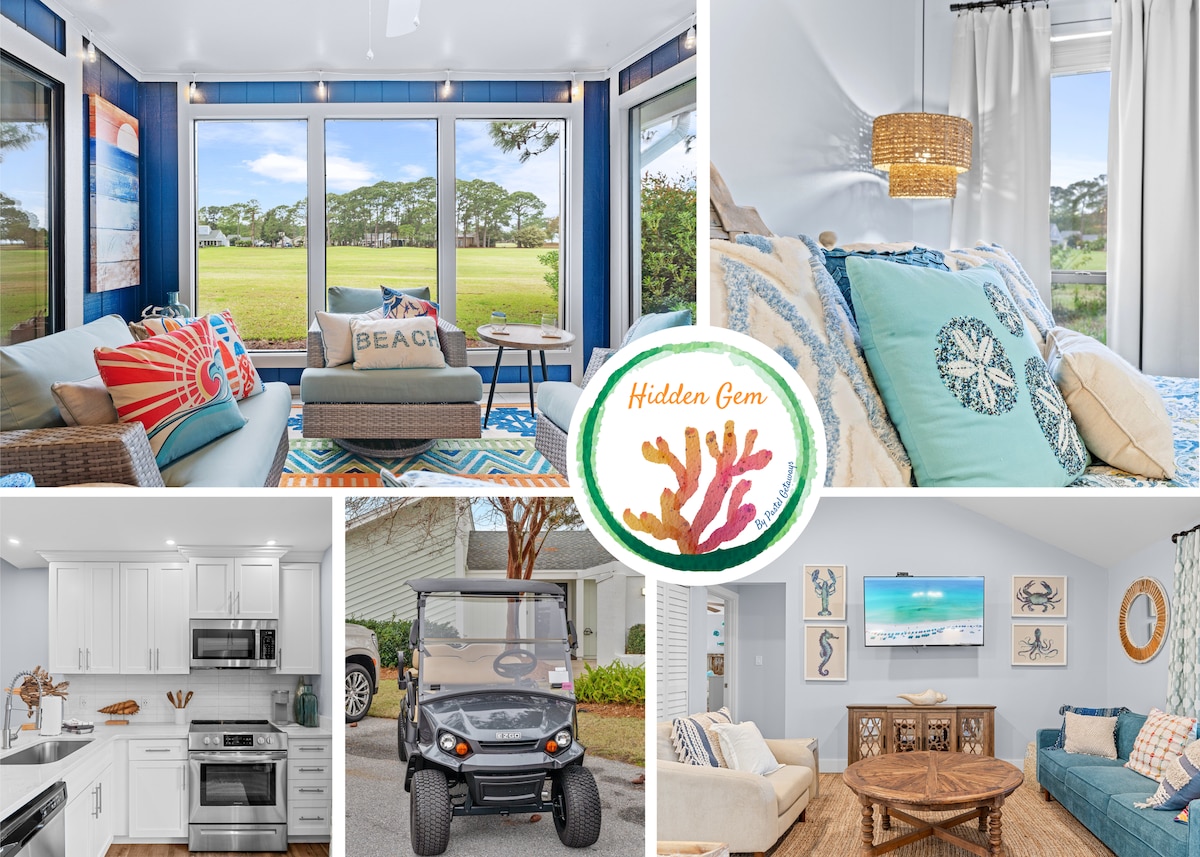 「隱藏瑰寶」是位於Sandestin®高爾夫和海灘度假村的2間臥室、2間浴室單層獨立旅居,配備所有所需的設施,包括新的6座高爾夫球車和電車通行證! 非常適合大家庭或兩對情侶入住,「Hidden Gem」在適當的臥室可供4人舒適入住-這裡沒有沙發牀! 從房子的幾乎每個空間都可以欣賞到美麗的景觀,旅人可以在Sandestin ®高爾夫和海灘度假村乘坐車、步行或騎自行車前往任何地方!