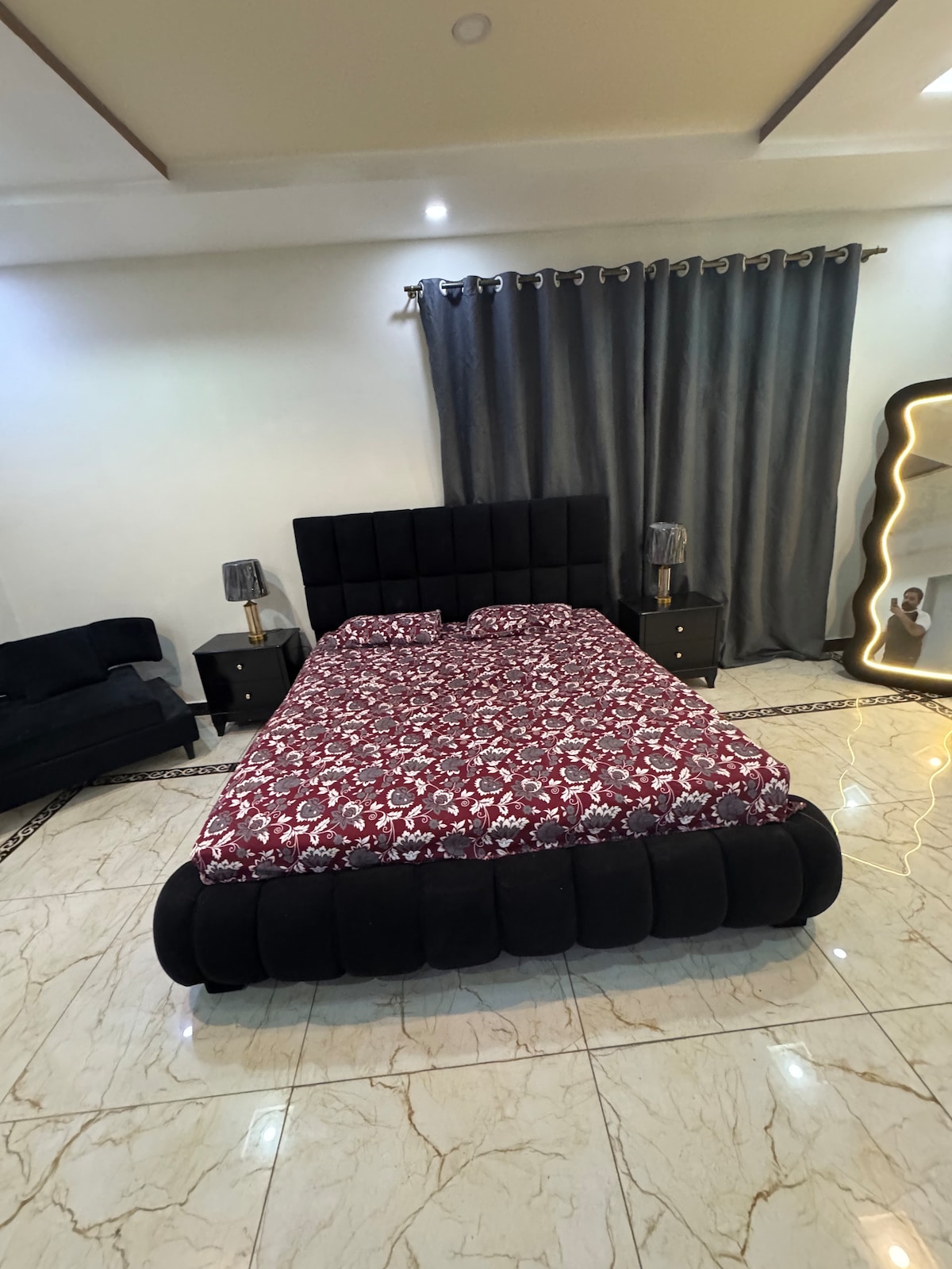 Only families and group of females or group of males can get intouch.we don’t accomodate unmarried couples. 2 minute drive to emporium mall,cinemas and many restaurants. Easily accessible from ring road and nearest to motorway from other cities. Extra facilities: dinning table,extra mattress, kitchen utensils,kettle,iron,stove,2 air conditioner, extra bathroom, parking garage etc