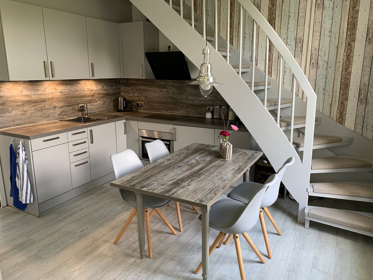 我們的公寓於2017年6月竣工,以北歐風格竣工,配有明亮友好的家具。 一樓有一個開放式起居用餐區域,配有設備齊全的廚房、陽臺和通往第二間臥室的樓梯,以及淋浴間、一間配有雙人牀的臥室,以及配有洗衣機和烘乾機的雜物房。 閣樓上有一間雙人臥室。 公寓有WLAN、bollard wagons和沙灘玩具。