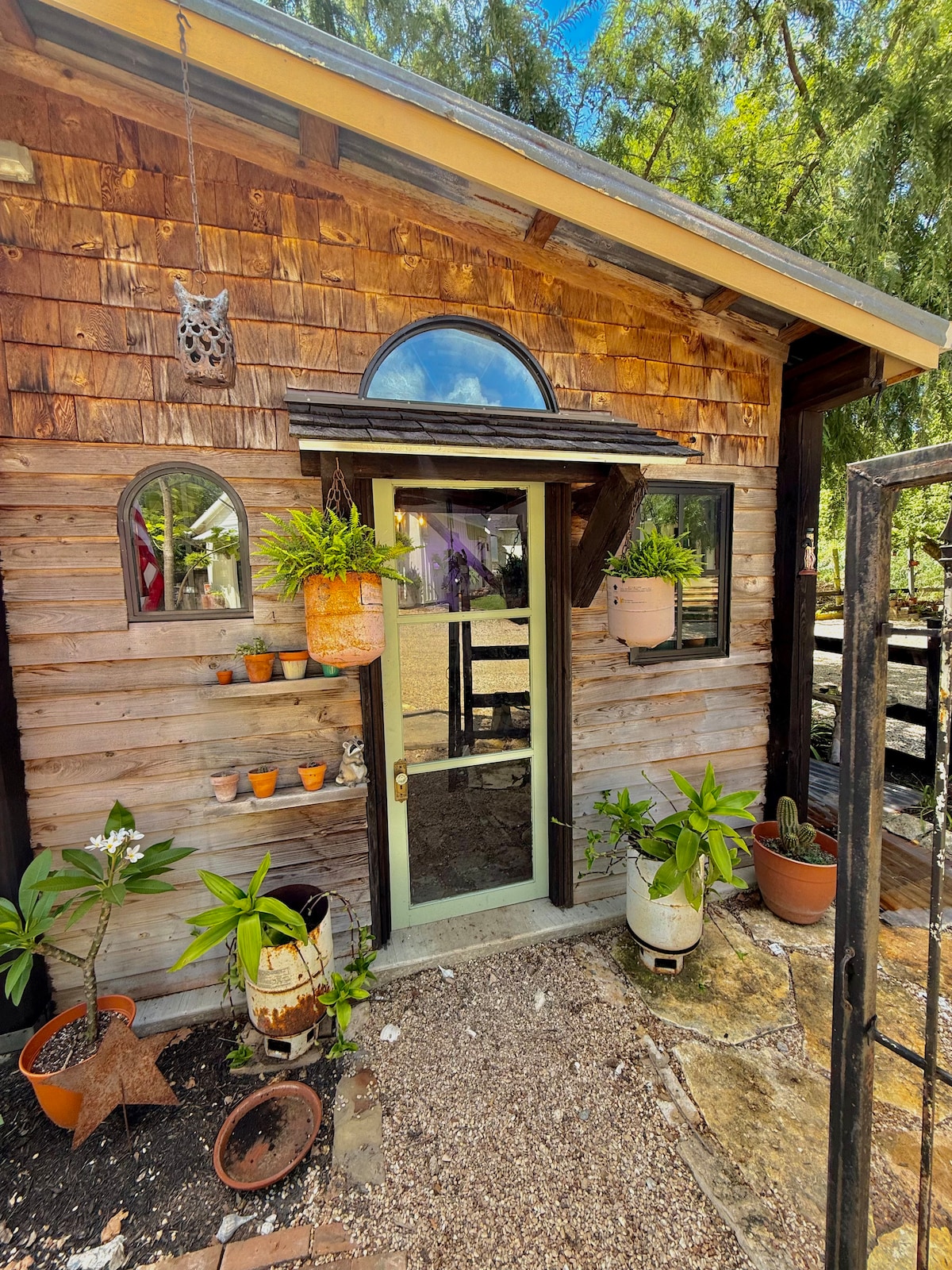 Bring hiking boots and fishing tackle to this ranch, which offers catch-and-release ponds, 150 acres to explore that are home to Elk, Oryx, axis and more! Cook in our outdoor kitchen, swim in the pool, and act like a kid again on our tire swings. Play ping pong, throw some darts, or challenge your friends and family to a game of cornhole or horseshoes. Rising star is 1 of 4 identical cabins (8 total on ranch)so check out Twinkling Star, Shooting star, or Western Star and bring the whole family! Check out our experiences page to book some horse time/time in the saddle.Hope to see you soon! Rising Star (and the other cabins) is located within steps of our pool and outdoor kitchen. Each cabin is a one bedroom with its its own private kitchenette, bathroom, and living room. The bedroom has one queen bed and there are 2 additional twin beds in the loft above the living room. Need more space? Click on my profile to see our other listings here on the ranch. Be sure to check out our 9000 sqft event venue too. Perfect for parties!! Outdoor kitchen, pool, pastures, tire swings, courtyards, cabins, fishing ponds (catch and release), the wood, and a game room which is located in the garage of the main house. Game room has ping pong, darts, horse shoes, cornhole We can show you around and chat it up or leave you alone, the choice is yours. Feel free to call or text anytime. Text preferred if after hours or if you don’t get an answer the first time you call. Escape urban life in the peace and solitude of these rural surroundings, located at the end of a country road. That said, the bright lights, together with bars, restaurants, and boutique shopping, can all be found a short drive away from here. Interested in horseback riding? A hayride? Maybe want to experience a day in the life of a cowboy? Go to the experiences section of my profile and book your experience today! Pull right up to within 100 feet or less from the front door of any of our cabins . The ranch is about 15 minutes from the town square so a car is recommended. There are a lot of winding country roads that are great for cyclists. Bring your fishing pole! Bring your hiking boots! Binoculars too. Ranch is over 150 acres so there’s lots of space to roam and adventure.